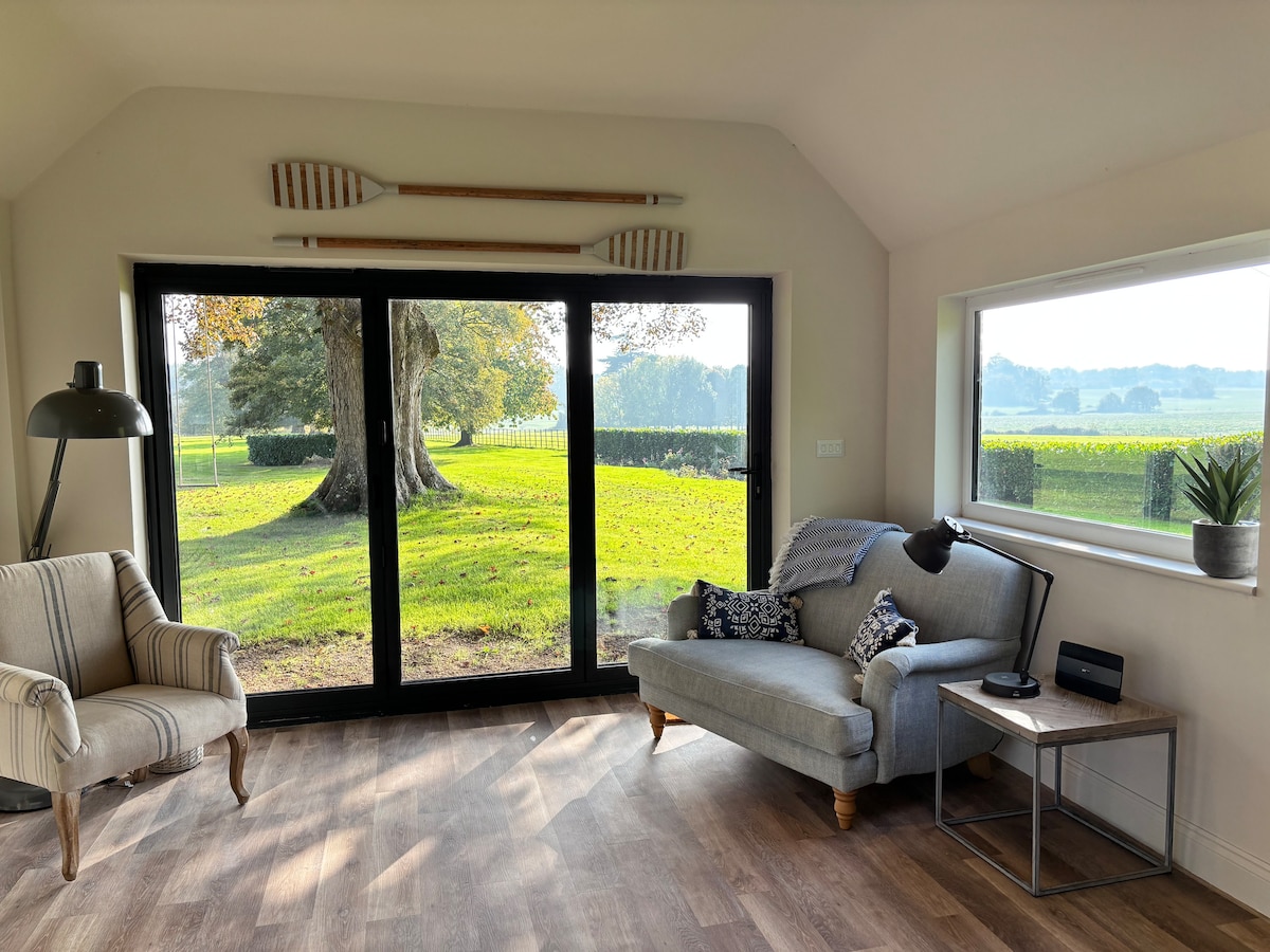 The Piggery is a secluded flint built hideaway, with lots of period charm, set in the grounds of a manor house. Converted to a high standard it has it’s own private garden, access to the owners tennis court & a large barn with table tennis, table football & pool, wider house grounds including an island, surrounded by the river Meon. Numerous walks direct from The Piggery and a number of local vineyards are nearby. 5/10mins walk away are two super pubs and the very well stocked village shop.