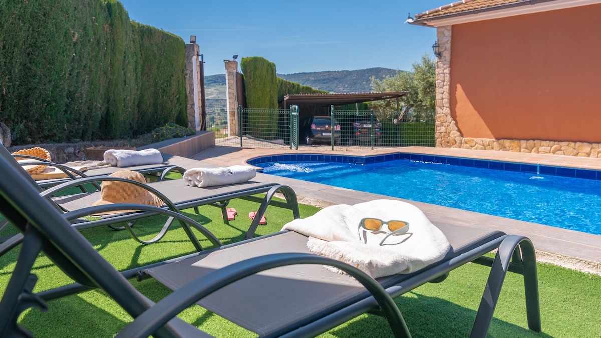 Casa independiente a las afueras de Ronda, solo para 2 con jacuzzi, aire acondicionado y calefacción centralizados, piscina privada de agua salada (abierta de mayo a octubre) o consultar, wifi, pantalla TV 42'' . Este alojamiento el lugar perfecto para disfrutar de unos días en pareja. En la zona superior, hay una gran piscina de agua salada de 11 x 5 metros, tumbonas, un gran porche y barbacoa y por supuesto con total privacidad. Is completely private the house and pool.