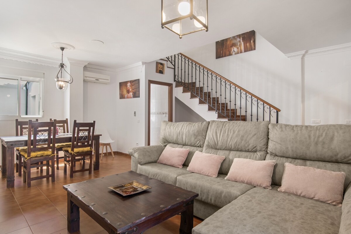 Very bright, quiet house in one of the best residential areas of Ronda, the house has two bedrooms, a bathroom, full kitchen with access to a private patio, living room with access to a large covered terrace. Garden at the entrance. It is a first floor without elevator. Our house is walking 2 minutes from the Train Station, 5 minutes from the Bus Station and about 7 minutes from the Tagus Bridge. Parking on the same street.