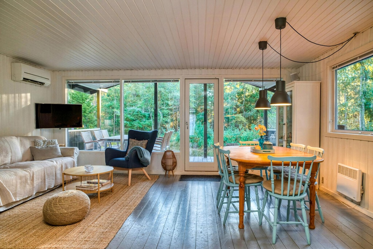 New floors, kitchen, and furniture done in 2024. See newest photos. Our cozy house is located in a protected forest on Bornholm near Due Odde. The house is located 1 min. walk away from one of Denmark's best sand beaches, that you usually will have all to yourself. Grocery shopping is 6 minutes away. The area has beautiful nature trails, where you won’t meet many people. The home has 3 bedrooms, a conservatory, a bathroom and a big kitchen area. Besides that there is also a large terrace.