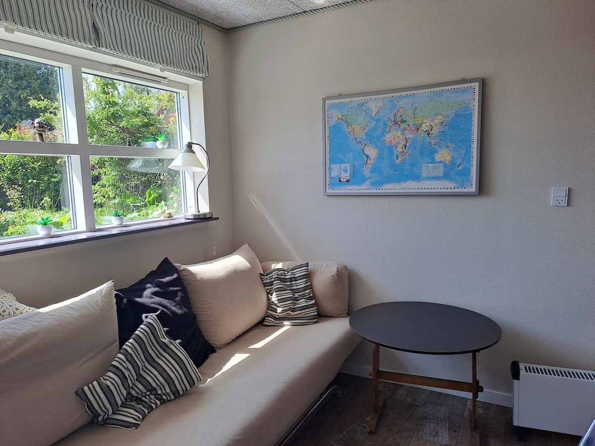 Lille anneks lige bag vores eget hus, huset har alt hvad du behøver til en ferie, eller en forlænget weekend. Da huset ikke er stort, anbefaler vi huset til 2 personer, med mulighed for opredning til yderligere 2 personer. Du kan parkere lige foran den hvide port, og det er gratis ;) 10 min. gang til strand og skov. 20 min. gang til hyggelig lystbådehavn. Der ligger en skøn café på vej mod havnen, her kan du osse købe is. Derudover har byen 2 supermarkeder, og en Pizza restaurant.