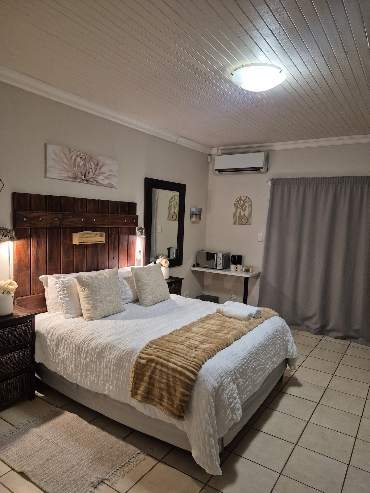This peaceful, secure guesthouse features two bedrooms (queen and twin/king option), a fully equipped kitchen, and a spacious living area with dining table and lounge. Enjoy entertainment with DSTV, Netflix, and free Wi-Fi. A desk is available for work, while a gas heater ensures warmth on cooler nights. Relax on the deck, by the fire pit, or under the acacia tree for a braai. Free secure parking, child-friendly, 5 mins from Wilgers Hospital and a shopping center.