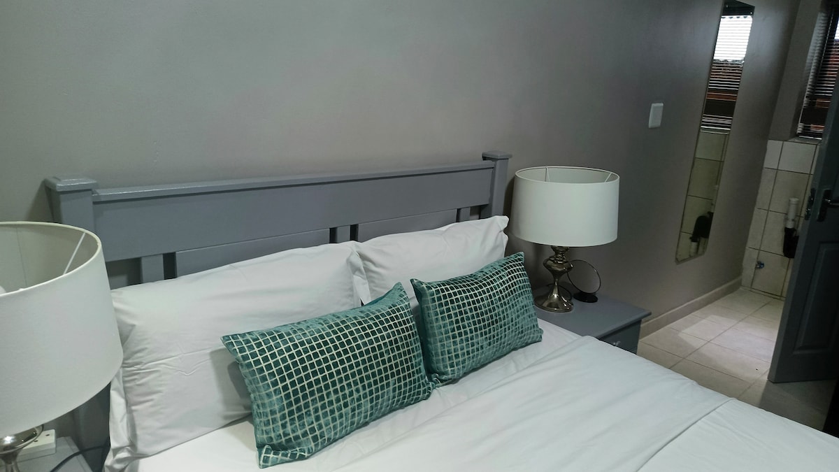 We welcome you to relax in our calm and luxurious space situated in a quiet section of Fourways. The apartment is uniquely and tastefully designed with amenities that radiate style and comfort. Treat yourself to this stunning apartment with a queen size bed, a fully equipped kitchen and a modern bathroom. Unwind on the patio or on the couch and enjoy a TV with Netflix and Youtube. The apartment has electricity backup that runs the TV and the Wi-Fi. Book your stay today and indulge in luxury.