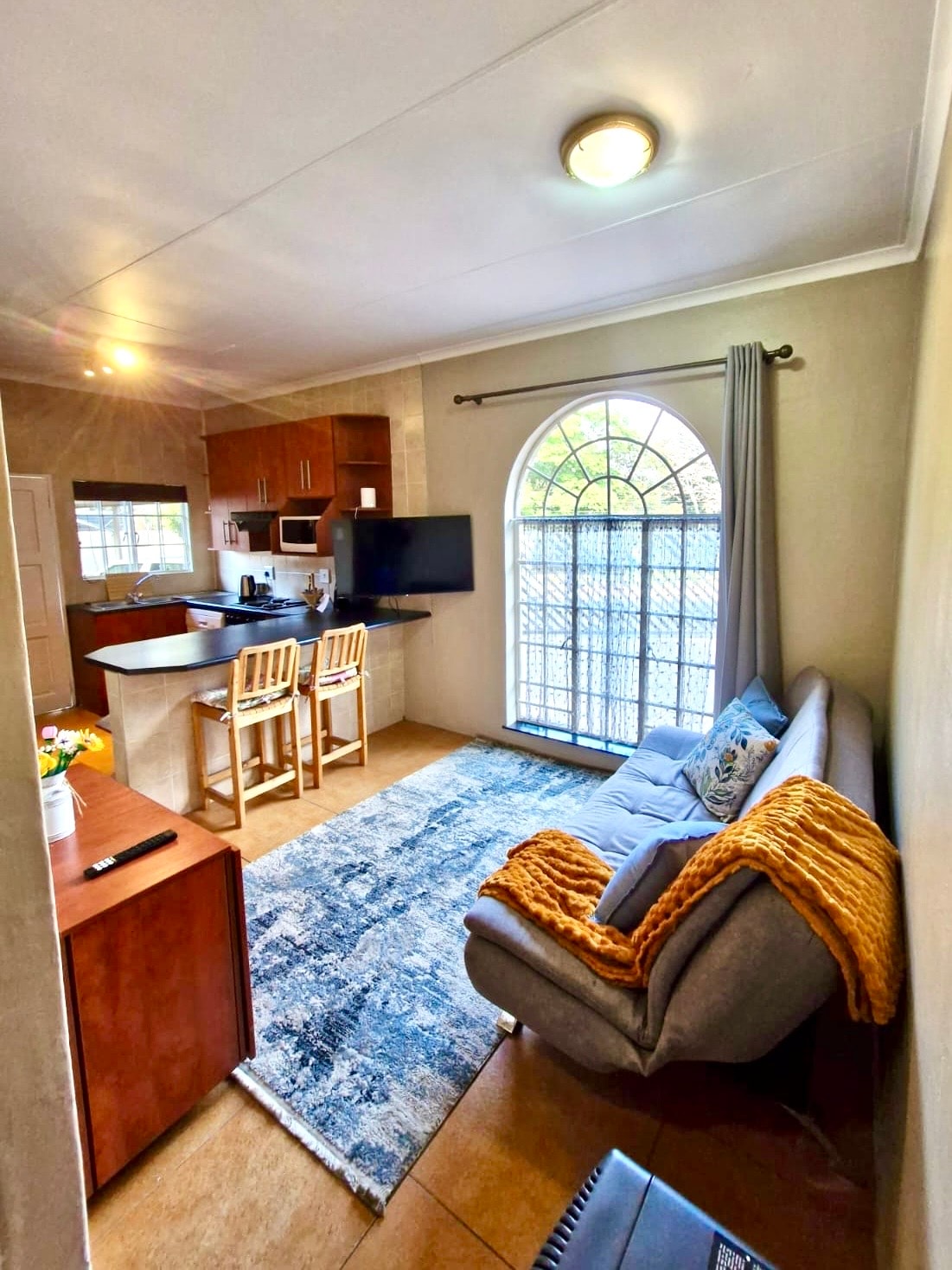 Fully furnished modern, self catering secure and fully equipped private studio apartment, with solar power, so you will not be affected by power outages! Situated in a quiet safe neighborhood, close to all major shopping malls and entertainment areas. The space is safe, calm and stylish, newly renovated and perfect for business persons or travelling couples. Please note that this apartment is strictly no smoking. There are very friendly dogs on the property which love to greet guests on arrival.