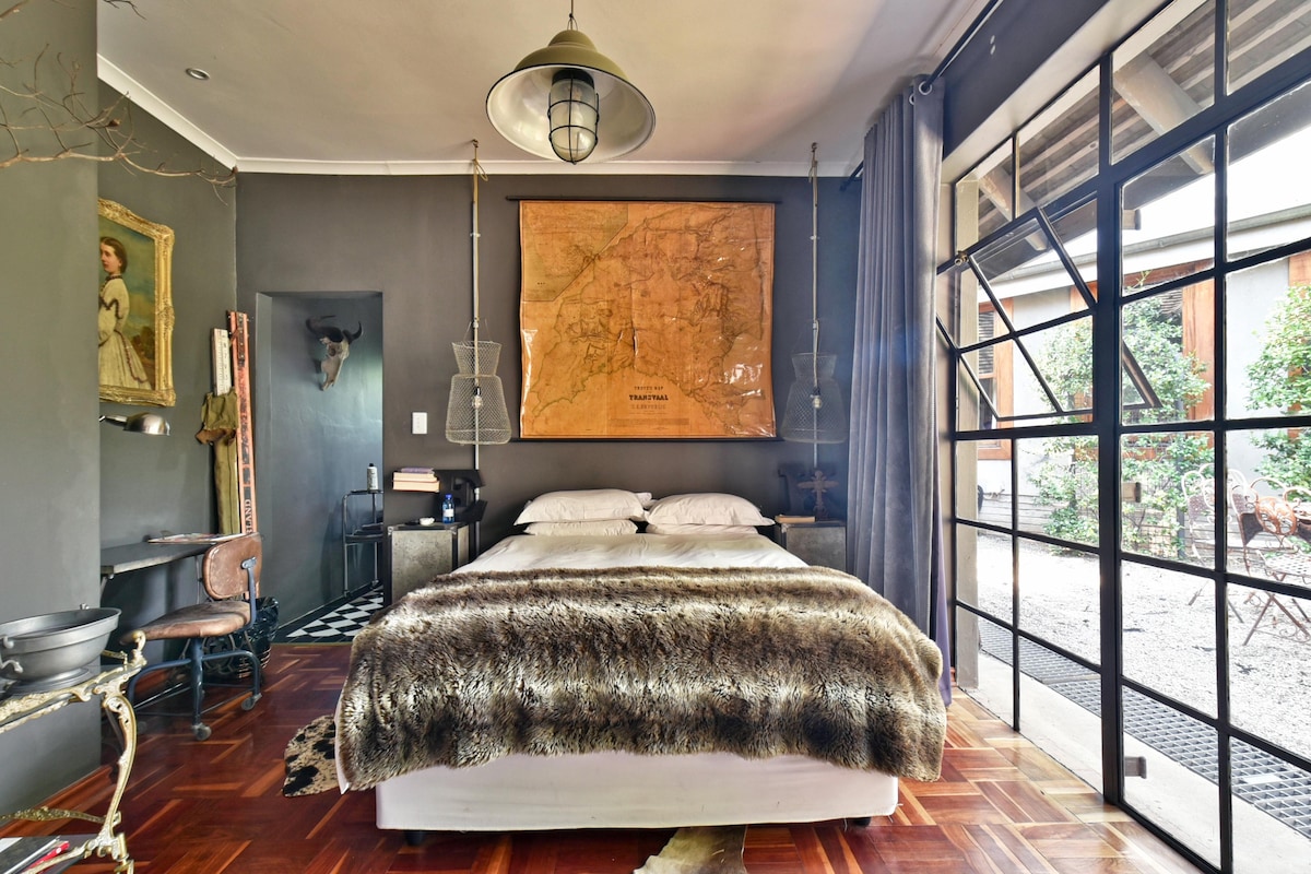 Escape to Industria - an eclectic steampunk studio in lush Hurlingham, just 2 km from Sandton. Industrial charm meets vintage elegance with repurposed decor, metro-tiled bathroom, and nods to 19th century innovation. Enjoy WiFi, solar power, secure parking, a flat-screen TV, and a garden view. The unit features a bath, shower, and convenient kitchenette - perfect for business travellers and curious souls alike. A rare blend of history, comfort, and creative flair in tranquil setting.
