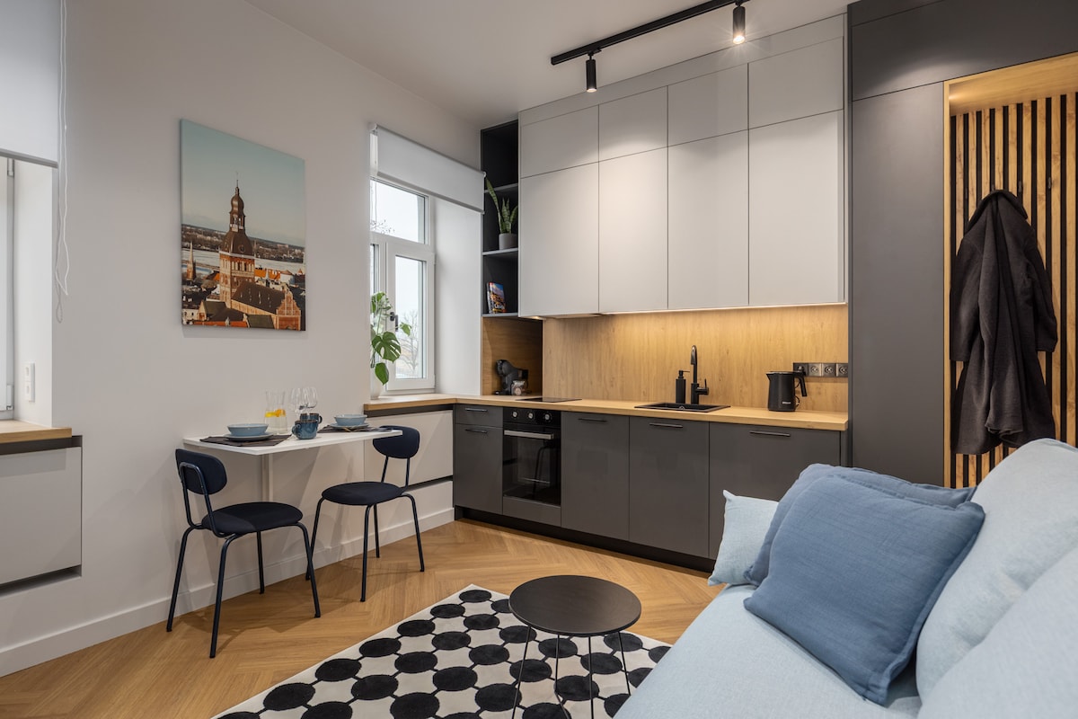 Situated in the very heart of far Riga center (Grizinkalns), surrounded by historical architecture, parks, restaurants, cafes, and other city center hallmarks. Your essential Riga sightseeing starts right at the doorstep as this apartment is located within the usual tourist routes. Moreover, you will enjoy not only the exclusive location but also the apartment itself. Despite being located in the far center, the street is calm.
