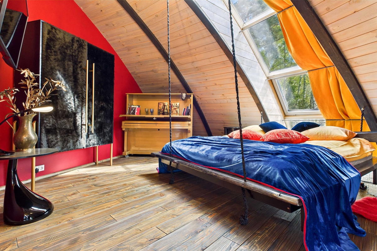 Welcome to your dream getaway nestled in the heart of the forest! This charming small house offers a unique bathtub located right in the living room, where you can soak in the warmth while enjoying the view of the forest through the windows. Step outside to find a small sauna with a stunning glass wall. It's the perfect spot to relax after a day of exploring the woods. Sauna requires preparation and it is additional service to be requested for a fee.