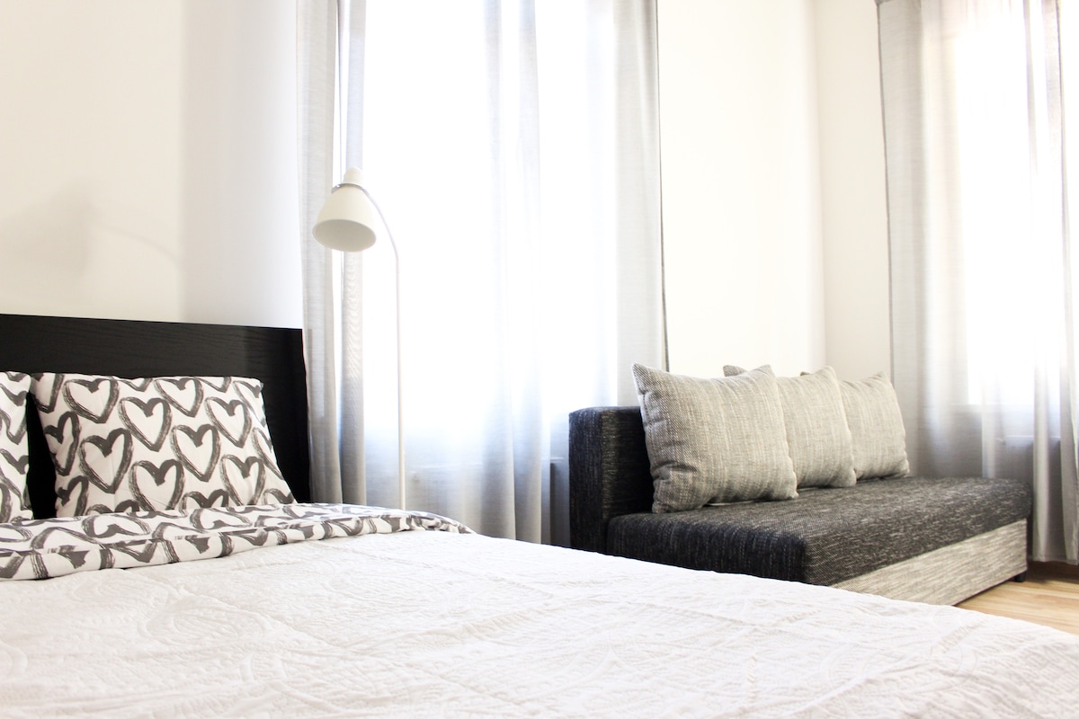 Абсолютно домашняя, уютная, солнечная, и очень тёплая, аккуратная и чистая квартира-студия 29 м2, в доме со своим садом, куда хочется возвращаться после длительных прогулок. Идеальное место для тех, кто хотел бы остановиться близко к центру города, но в то же время, рядом с природой. Все удобства и бытовые нужды - буквально в шаговой доступности. Отлично подойдет для 1-2 человек ищущих умиротворения и восстановления сил после дней активных путешествий.