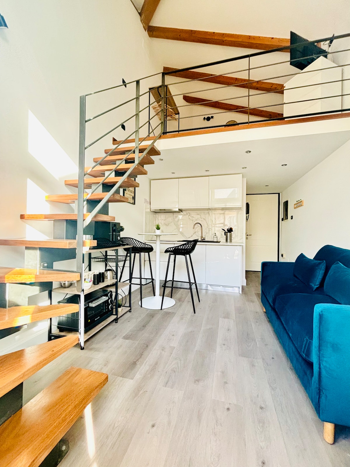 Le logement est refait à neuf (mai 2020). Il est composé d'un espace cuisine ouvert sur la pièce de vie,qui donne sur un charmant balcon. Il y a aussi une salle de douche avec sèche serviette et machine à laver. Les toilettes sont séparés. Il y a enfin une petite chambre. Attention, pour accéder au lit, il est nécessaire de monter quelques marches.