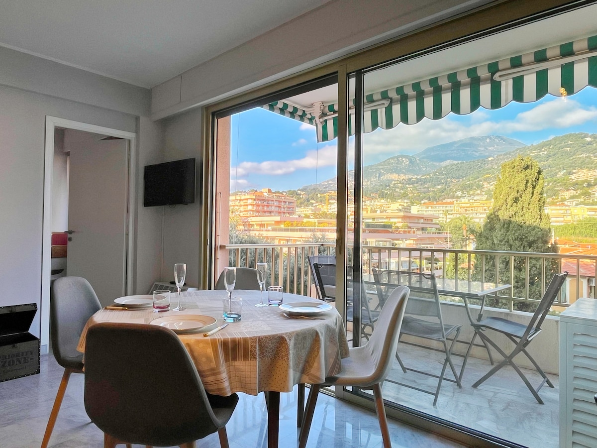 Appartement de 2 pièces (50 m2) entièrement équipé avec terrasse, situé en plein centre de Menton, à 50 m de la plage et à 150 m des jardins Biovès (fête des citrons). L'appartement, classé 3 étoiles, est calme, sans vis à vis et très lumineux avec une vue sur mer et montagnes (dernier étage). Tous les services se trouvent à proximité, à pied : commerces, restaurants, gare. Stationnement dans les rues alentours ou parking souterrain : George V à 150 mètres avec réservation possible.