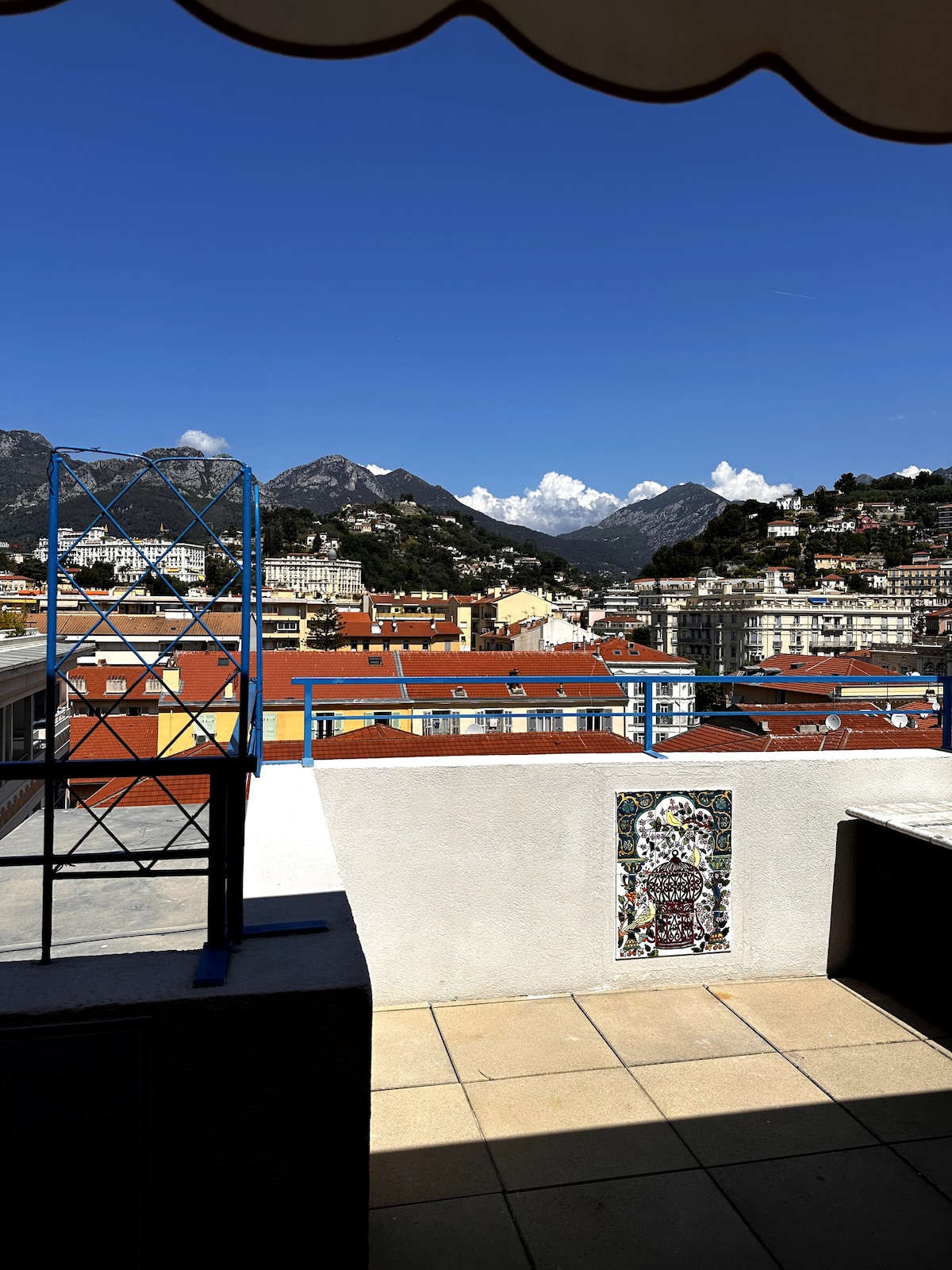 Beautiful apartment located in the heart of Menton (the lemon capital). 1 bedroom apartment of 35m², up to 4 people (1 queen size bed + 1 sofabed in the living-room). Fully furnished and eqquiped apartment, you'll just have to open your luggages and enjoy a peaceful breakfast on the 22m² terrace with a spectacular view on the city and the mountains. Beach is just across the street. Private garage inside the building. Bus stop right in front of the building. Train station is 8 minutes by walk.