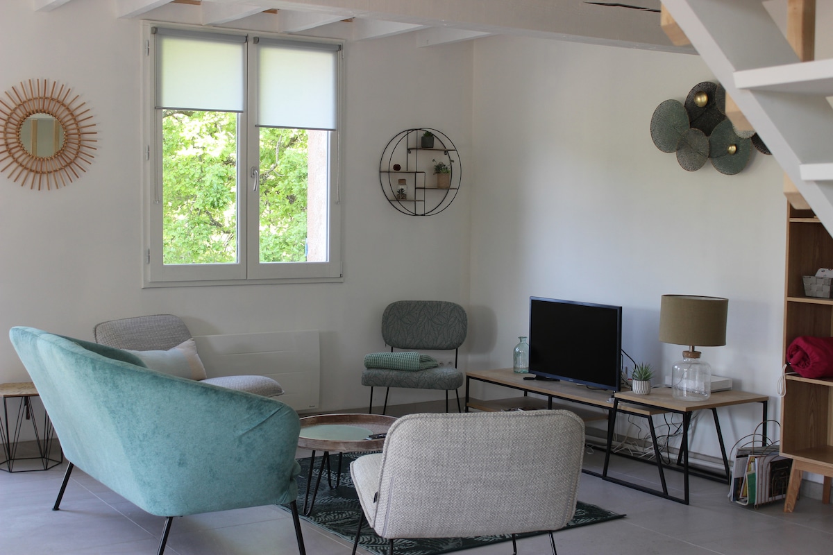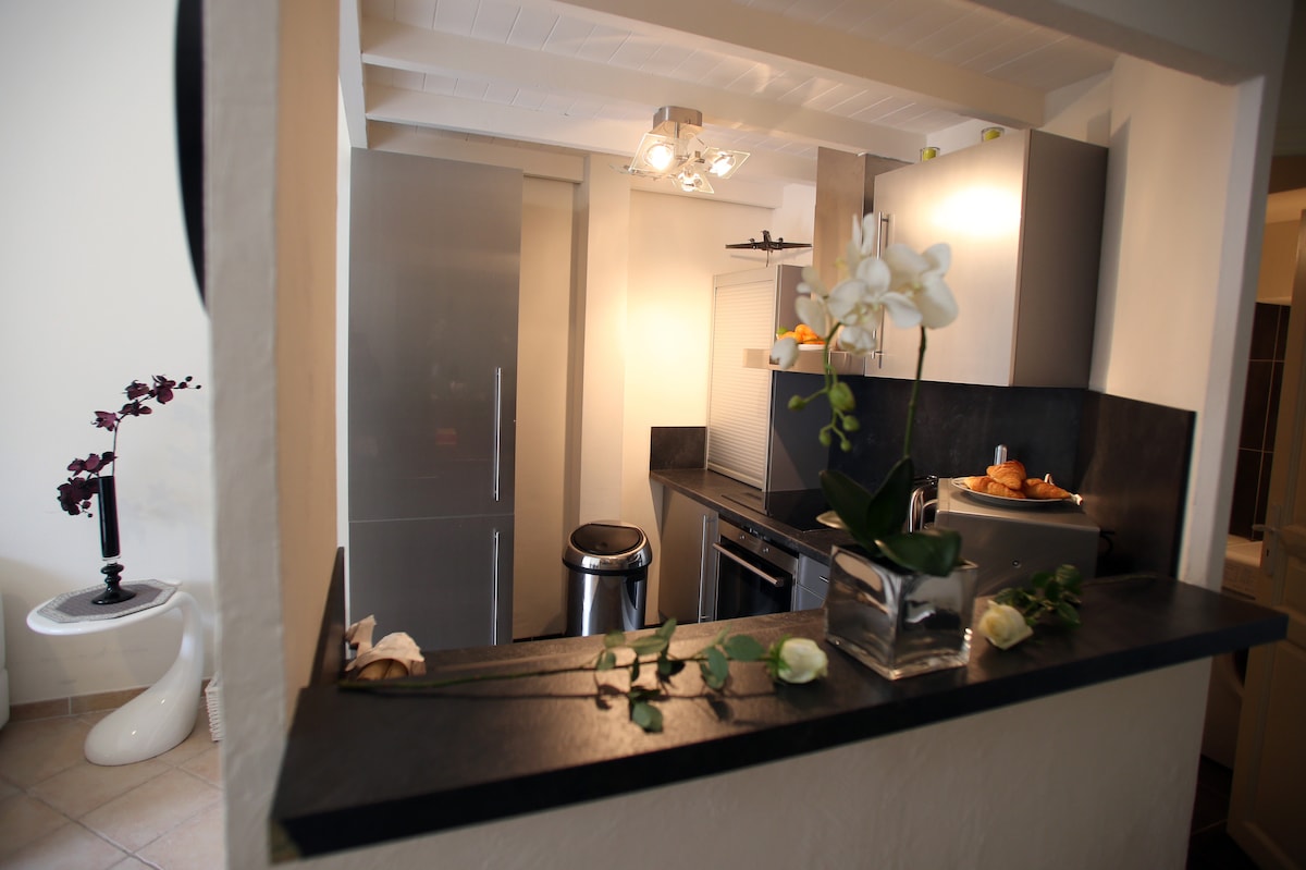Détendez-vous dans ce logement unique et tranquille! Un petit coin de campagne à deux pas du village et d'un lac. Vous logerez dans un appartement (1 chambre lit double et 1 canapé convertible) neuf, rénové cette année situé dans une bastide provencale du 17eme siècle. L’accès au jardin est libre. Présence d’un parking fermé et facile d’accès , totalement sécurisé. Le lieu n’est pas adapté aux bébés en raison de la grande piscine (6m x 12m) et de la présence de deux chiens sur la propriété.