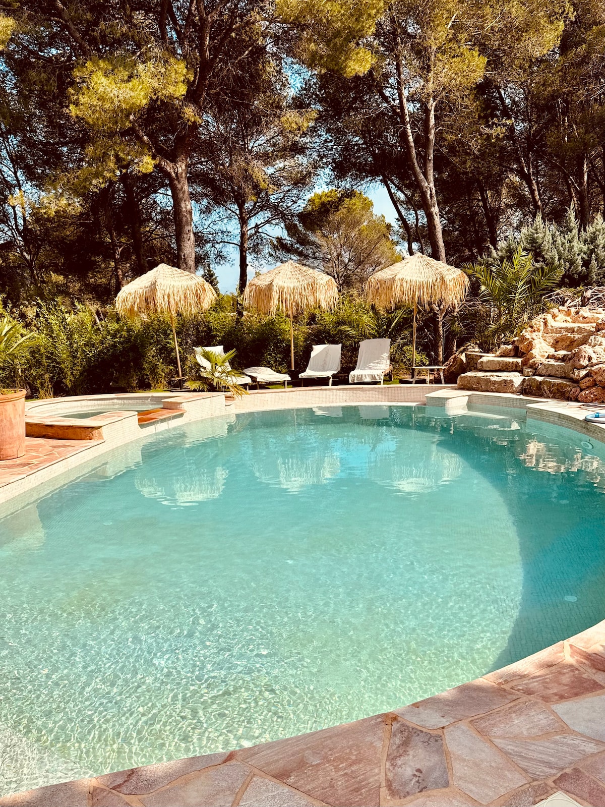 Stunning boho-chic single-story villa with an infinity pool (heated from April to October), located in Les Issambres. It offers a breathtaking 180° view of the Bay of Saint-Raphaël, the Estérel Massif, and the Alpes-Maritimes. Situated in a very quiet neighborhood, it is just a 10-minute walk from one of the most beautiful coves in Les Issambres: La Calanque Bonne Eau