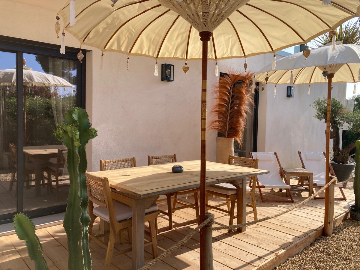 SUNSET VILLA allie modernité, convivialité et élégance dans un cadre idyllique. Située dans le golfe de Saint-Tropez, à 4 min des plages et commerces des Issambres, 10min de La Nartelle, elle offre des vues mer et collines, un ensoleillement optimal et un environnement paisible. Cette villa de 200 m², sans vis-à-vis, dispose de 4 chambres avec climatisation, 4 salles de bain, une grande piscine, 1 000 m² de terrain paysagé plat aménagés d’au moins 6 espaces extérieurs et d’un terrain de pétanque