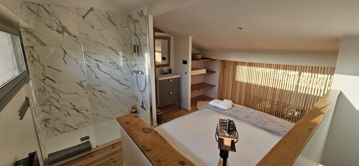 Bienvenue dans notre charmant studio adjacent au centre-ville ! Notre espace offre une retraite paisible tout en étant à proximité du charmant village. Profitez du confort d'un studio moderne avec une décoration soignée, un lit douillet, une cuisine équipée et une salle de bains bien aménagée. Petit Coin Extérieur : Détendez-vous dans notre petit espace extérieur, idéal pour savourer un café le matin ou pour profiter du calme de la soirée.