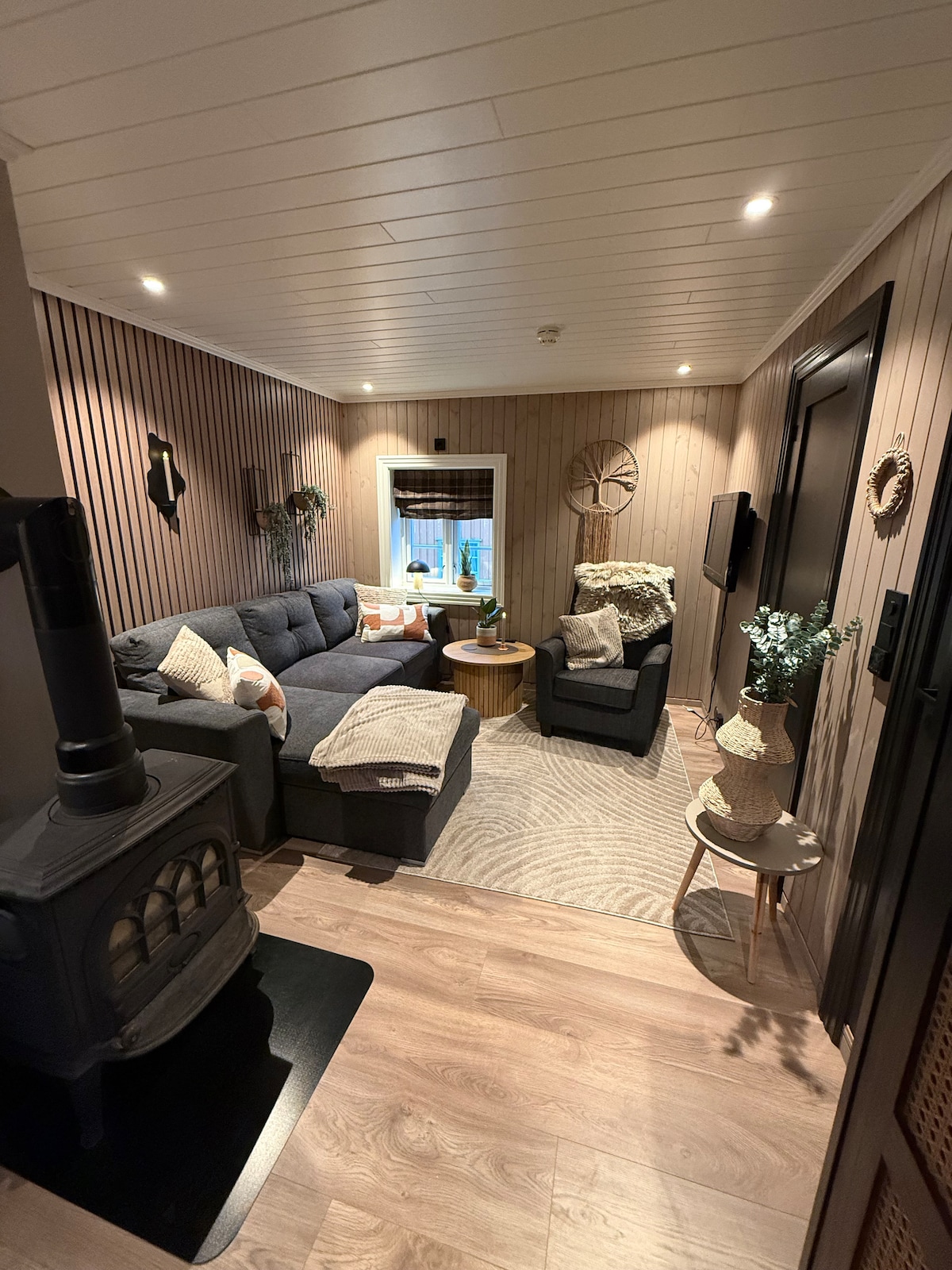 Harefløya is a part of a modern annex in Hånesåsen, Pølsebu, with two apartments, which we rent out separately. All linked to the extended family's holiday complex. Harefløya has two bedrooms, a living room with kitchen, and a tiled bathroom, with shower and toilet. There is an internet-based TV. Pølsebu has a shared entrance with a laundry room where you can find washing machine and dryer.