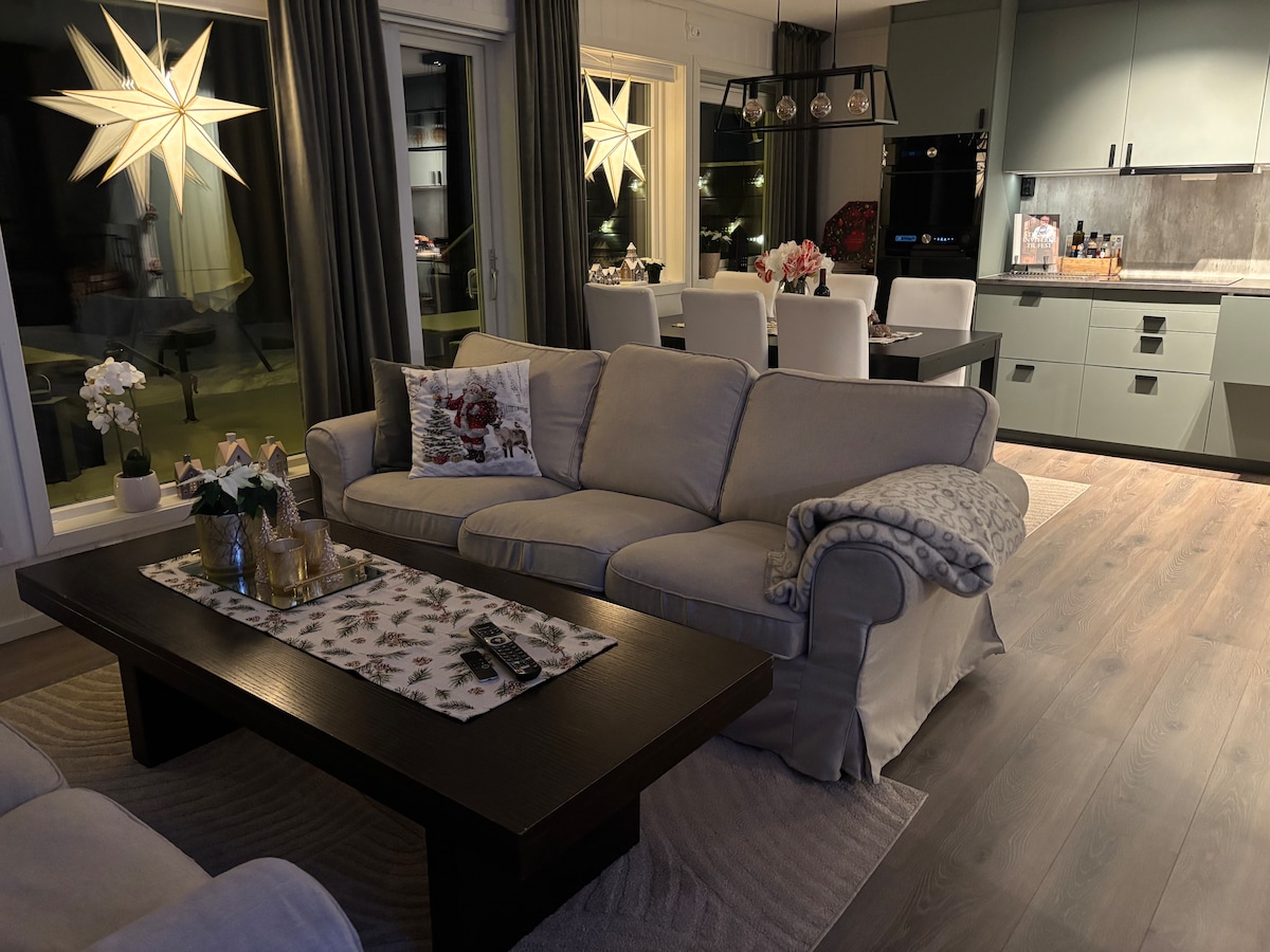 Vi leier ut vårt andre hjem, en stor og romslig leilighet i sentrum av Røros. Den ble bygd ny i 2016, så den er moderne med høy standard. Tre soverom med dobbeltsenger i alle. Mulighet for å sette inn en oppblåsbar madrass hvis det er ønskelig. God plass og høyt under taket i stua. Her går det an å spenne på seg skiene rett utenfor døra, og gå rett ut i skiløypene. Sprinkelseng står på det ene soverommet og Tripp trapp stol står på kjøkkenet. Velkommen😊