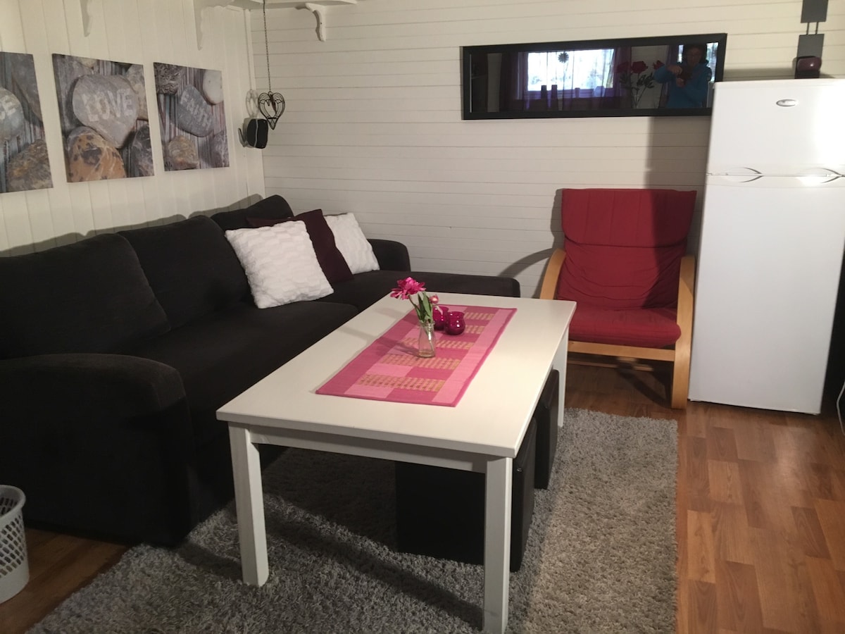 Utsøkt ny leilighet med hyttesjarm!