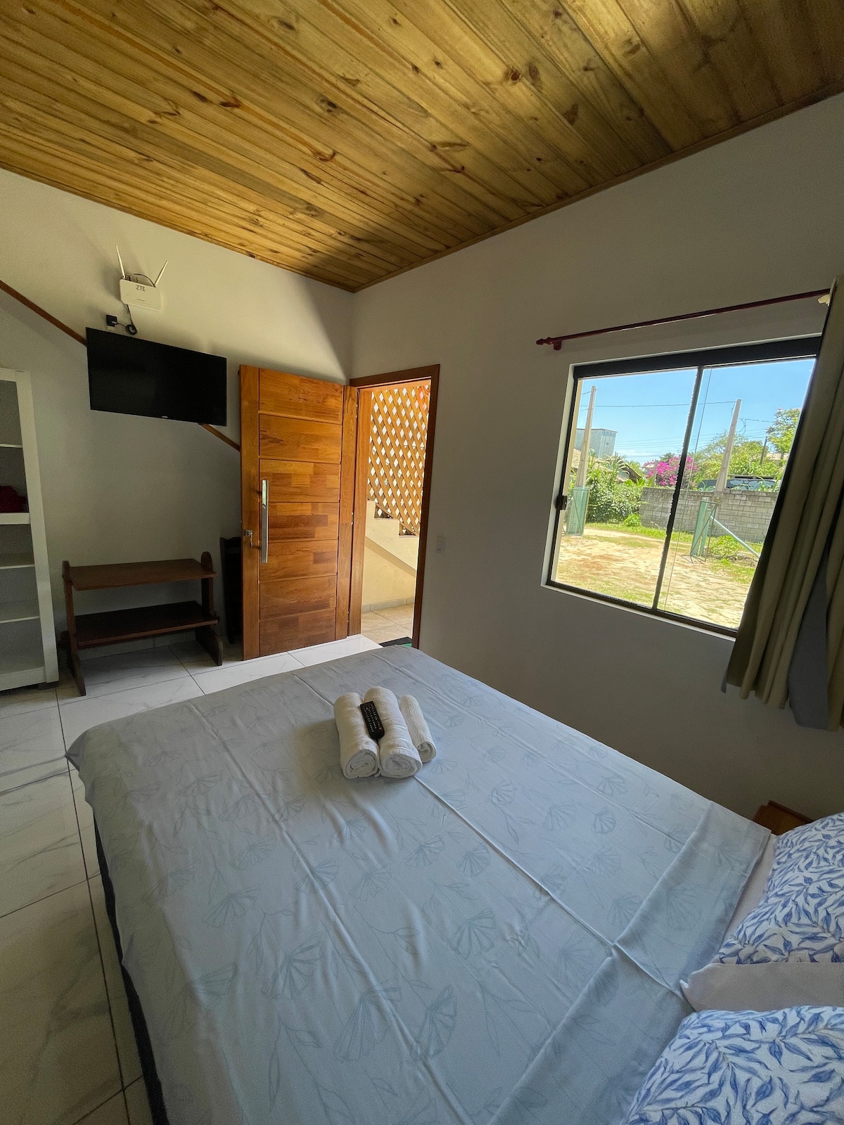 A nossa casa de hóspedes fica dentro de um pequeno condomínio com pátio compartilhado. Ela fica praticamente ao lado da lagoa das capivaras e muito perto do mar. Um espaço super gostoso e perfeito para um casal. A cozinha é toda equipada com utensílios domésticos e uma churrasqueira. O quarto possui escrivaninha para trabalho, cama King e tv smart. O banheiro possui chuveiro a gás e ducha higiênica. Dias lindos são vividos aqui :)