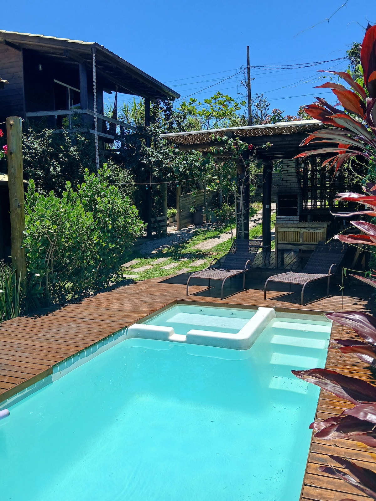 Nosso espaço é pensado para nossos hóspedes. Possuimos um espaço com 1500m², local seguro, casa completa e equipada, mesa de sinuca, piscina aquecida, área de jacuzzi de hidromassagem, acesso à lagoa privativo, prancha de standup paddle, caiaque etc. Nossa localização é privilegiada por belezas naturais, estamos localizados a cerca de 2km da Praia do Rosa, mas além desta linda praia, há outras lindas praias também na região, como Praia do Ouvidor, Praia da Barra de Ibiraquera, Praia do Luz, Etc…