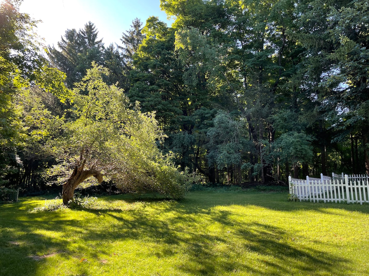 In-law suite with kitchenette and private entrance near Green Lakes State Park in beautiful woodland setting; upstairs bedroom suite with queen bed, twin air mattress (available upon request), and cozy claw foot tub with handheld shower attachment; access to 100+ acres of wooded trails, good for walking and mountain biking; 1/2 mile from Four Seasons Golf & Ski Center
