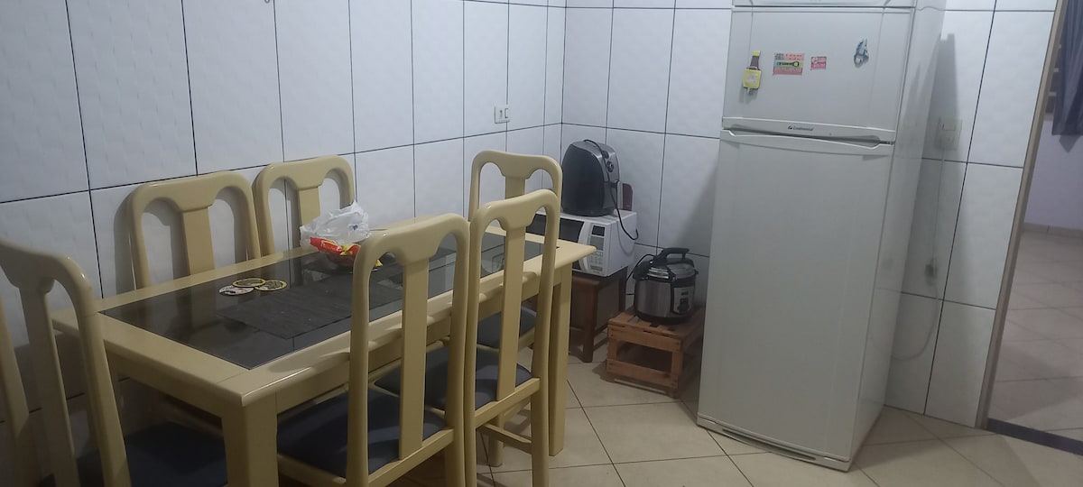 Ar-condicionado Geladeira Banheiro privativo Wi-Fi disponível Ótima localização, perto do rio e comércios Não nos responsabilizamos por objetos deixados no ap e por carros deixados no pátio(garagem de uso coletivo sem vagas exclusivas, sujeito a indisponibilidade por excesso de veículos). não há refeições inclusas checkin até 12 horas das sextas-feiras obs. levar roupa de cama e de banho, não servimos refeições.