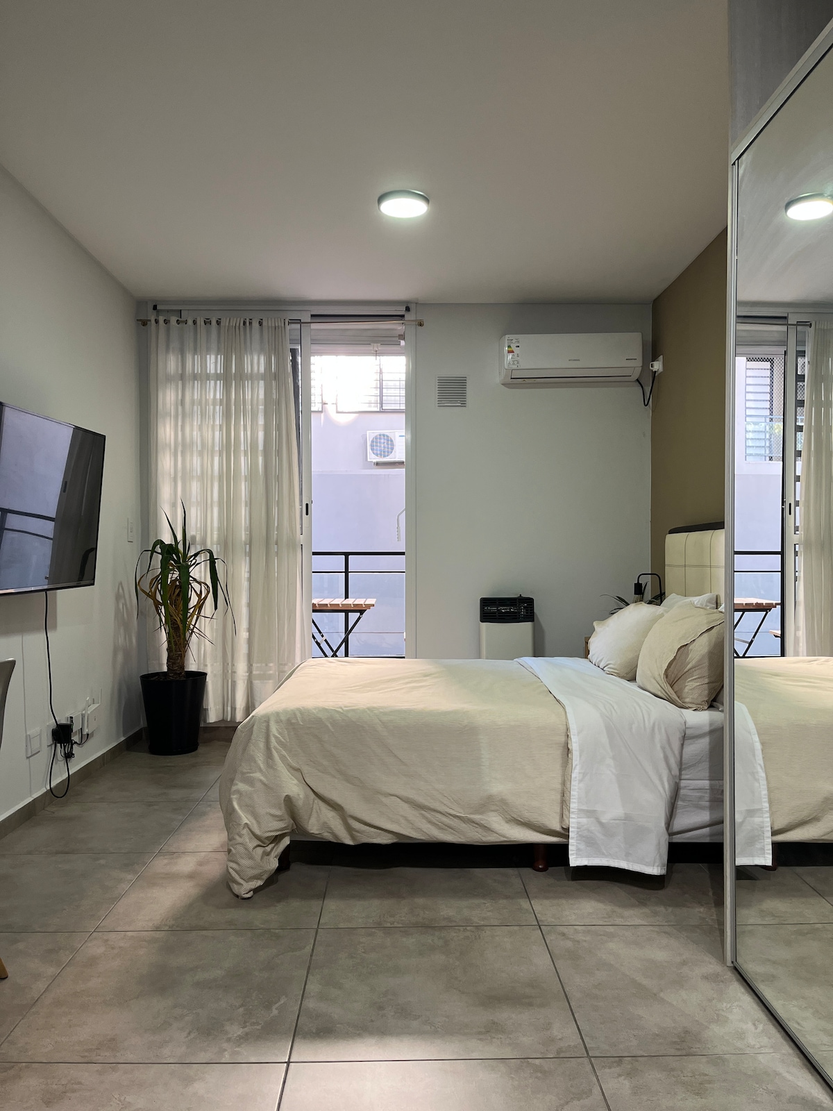 Despertá en pleno casco histórico, a pasos del Monumento a la Bandera y del río Paraná. Este moderno y luminoso departamento ofrece la combinación ideal entre ubicación, comodidad y tranquilidad para disfrutar Rosario como un local. Con 33 m² cuidadosamente diseñados, es perfecto para viajes de descanso, trabajo o escapadas en pareja. El espacio cuenta con aire acondicionado frío/calor, Smart TV y WiFi rápido, todo preparado para que tu estadía sea cómoda desde el primer momento.