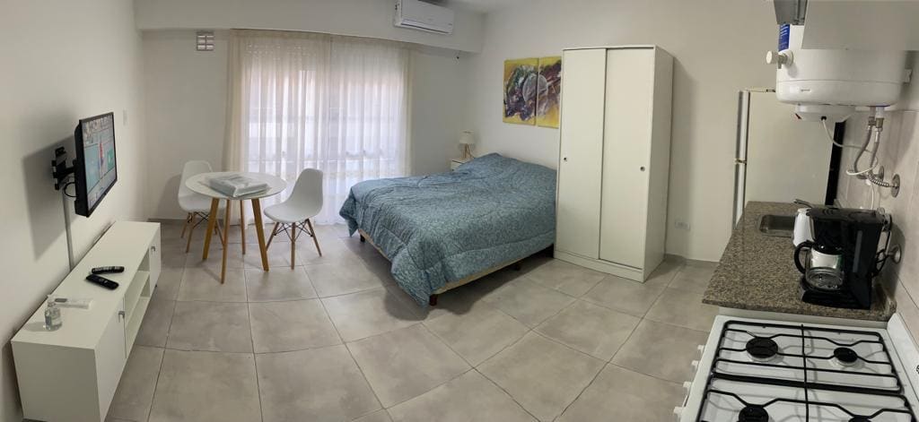 Our comfortable studio is located in the heart of Rosario city. Suitable for two people, the apartment is very close to shopping areas, places to eat and drink at night and several medical attention centers. It's also at walking distance from areas of interest like Paseo Pellegrini, Oroño Boulevard and Independence Park.