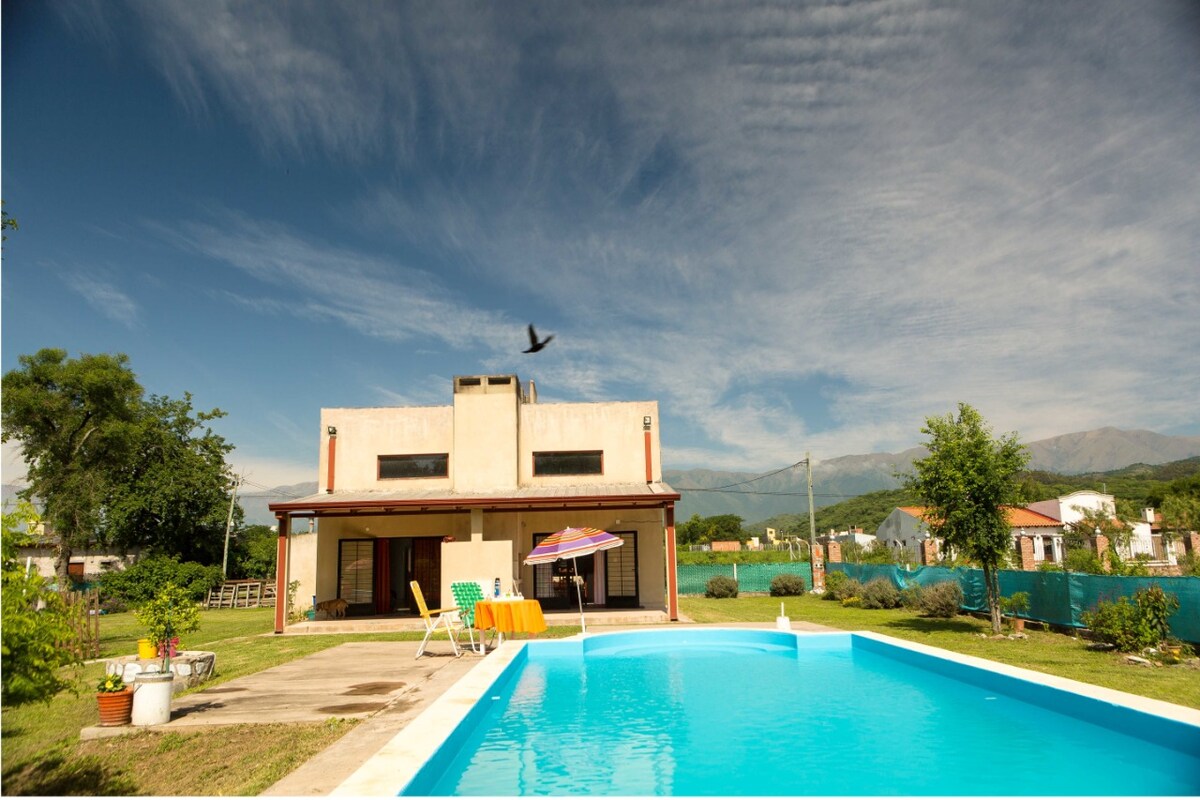 Rodeada de hermosos paisajes y jardines, esta villa tiene impresionantes vistas de la Cordillera de los Andes. No importa dónde te encuentres, podrás asomarte y echar un vistazo a la cordillera, con sus verdes o azules cerros, piscina y un amplio y natural rio!! La casa está hecha de muchos materiales locales, como madera, piedra y ladrillos de barro, lo que le da la auténtica sensación del norte argentino.