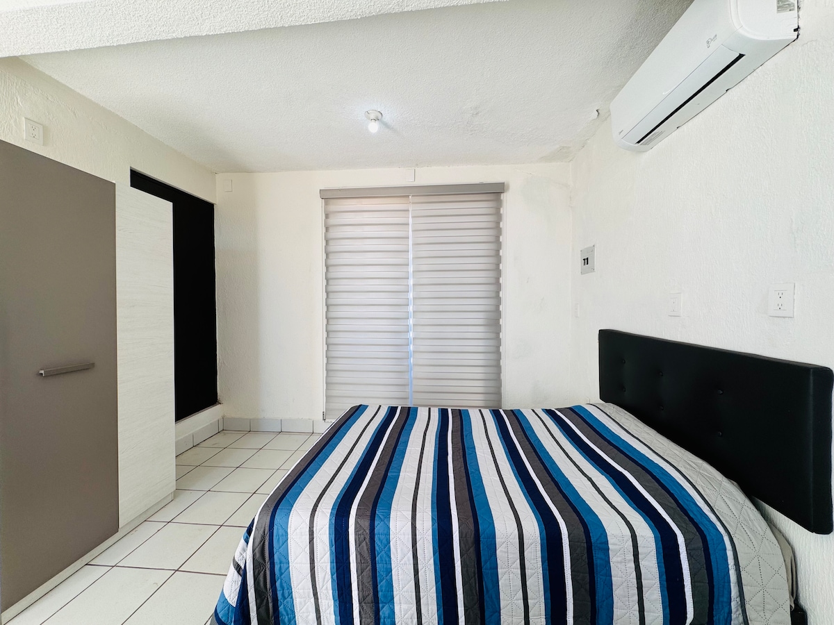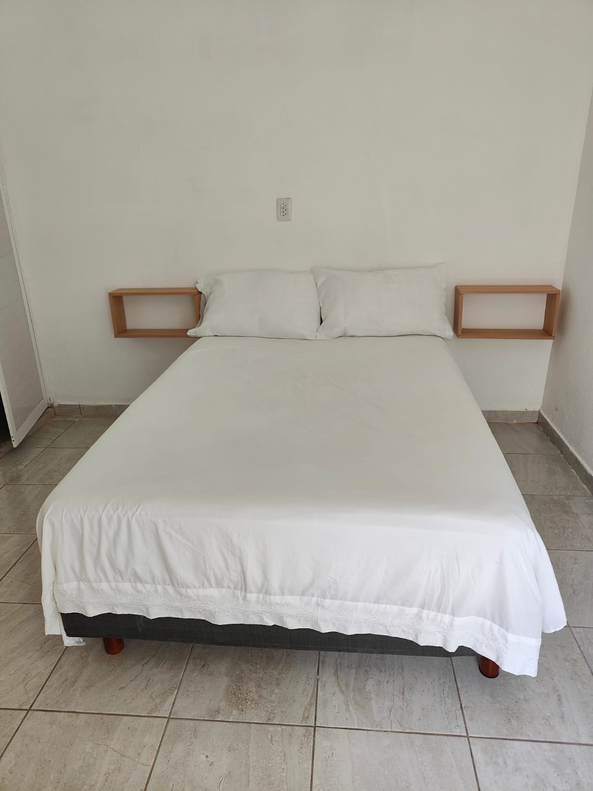 Sencilla y cómoda habitación para estancias cortas, vigilancia 24/7, cochera para un auto, en un ambiente muy tranquilo. (No contamos con agua caliente)