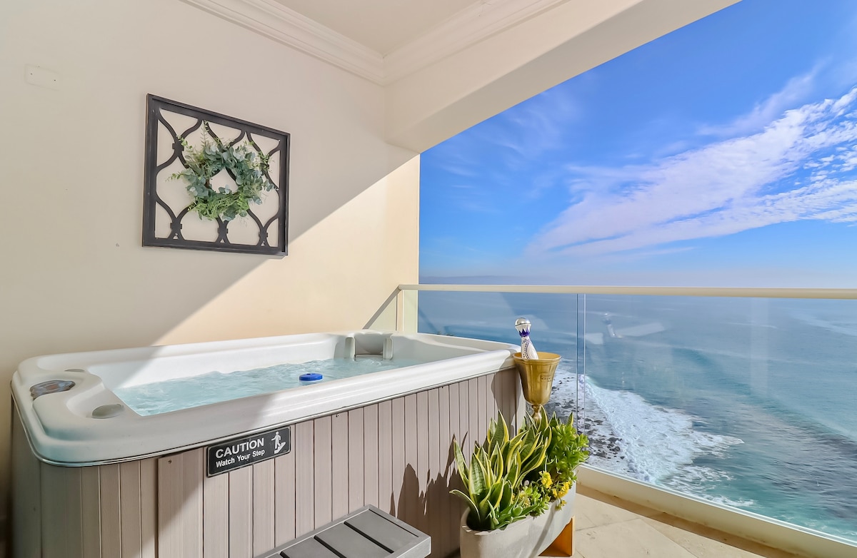2卧室海滩绿洲,壮丽海景,泳池和热水浴缸