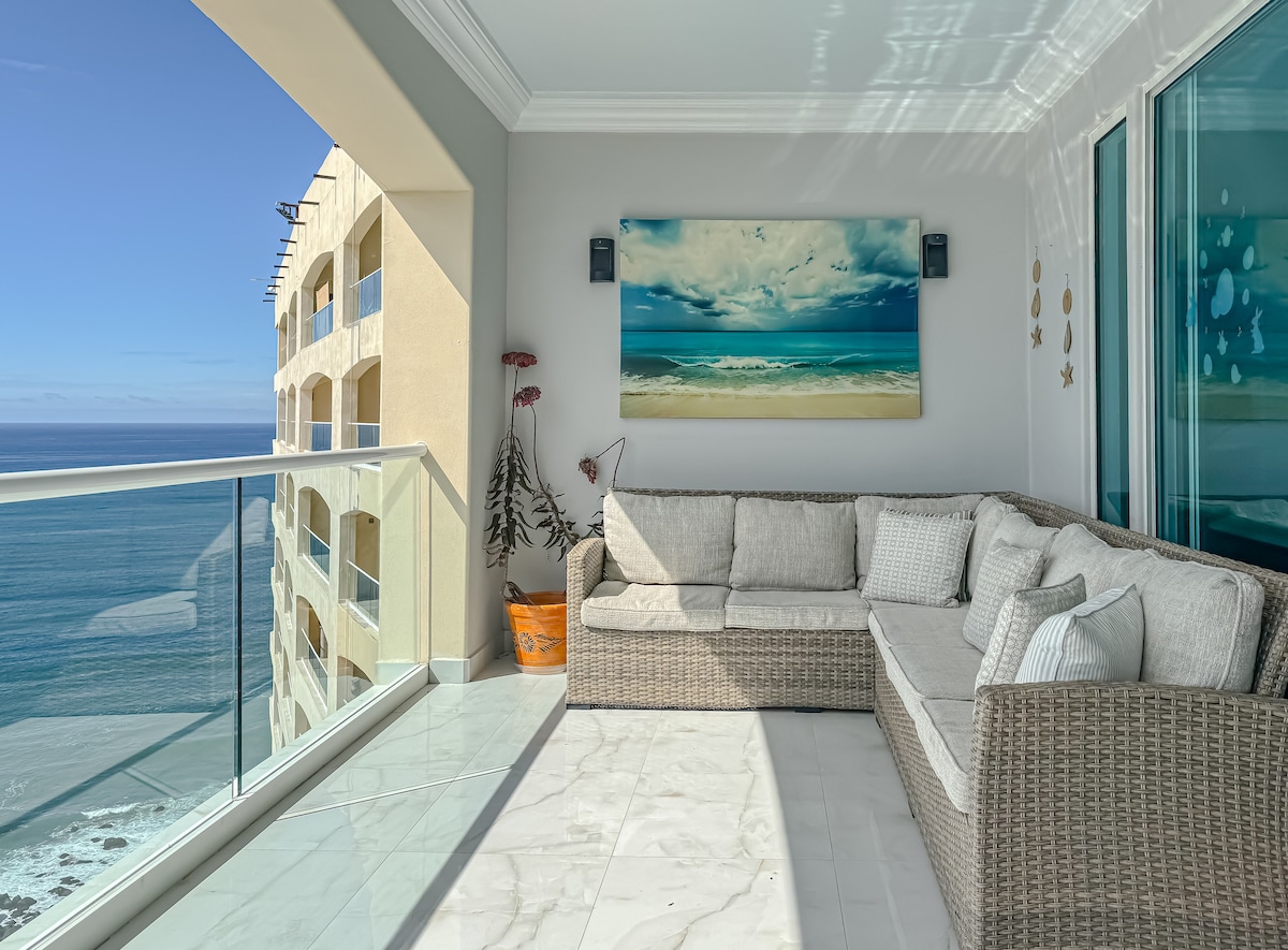 Wake Up to Breathtaking Ocean & City Views · Stylish Condo with a fully equipped kitchen, dining for 6, living room with 55" smart TV, and a master bedroom with 50" smart TV. Sleeps up to 6 guests (including infants) One assigned parking space No pets allowed A refined coastal retreat designed for relaxation and comfort. For your comfort and cleanliness, pets are not permitted. Relax. Indulge. Wake up to ocean views. This condo offers the perfect setting for your next luxury getaway.
