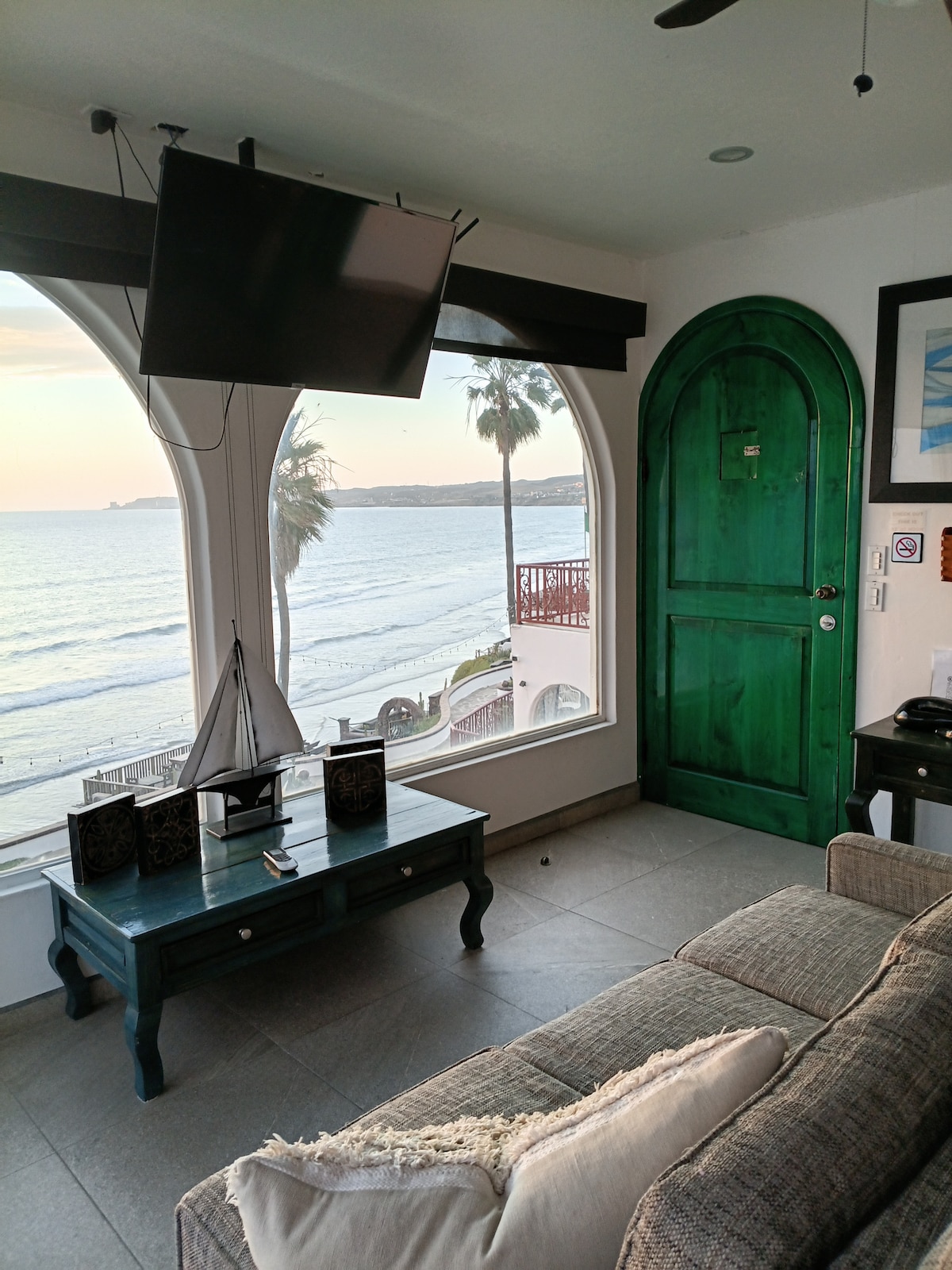 Freshly remodeled & decorated oceanfront condo in Rosarito/Calafia, with EXCLUSIVE (1 of 5) walk-out access to terrace level heated pool. Unreal view! Please review "Other Details to Note" section before booking to ensure our home aligns with your needs & expectations. The third level pool is strictly off limits to all guests under age 18. No pets. Onsite amenities include - Multiple pools and Jacuzzis (some with private cabanas) - Tennis Court - Sand volleyball court + So much more….
