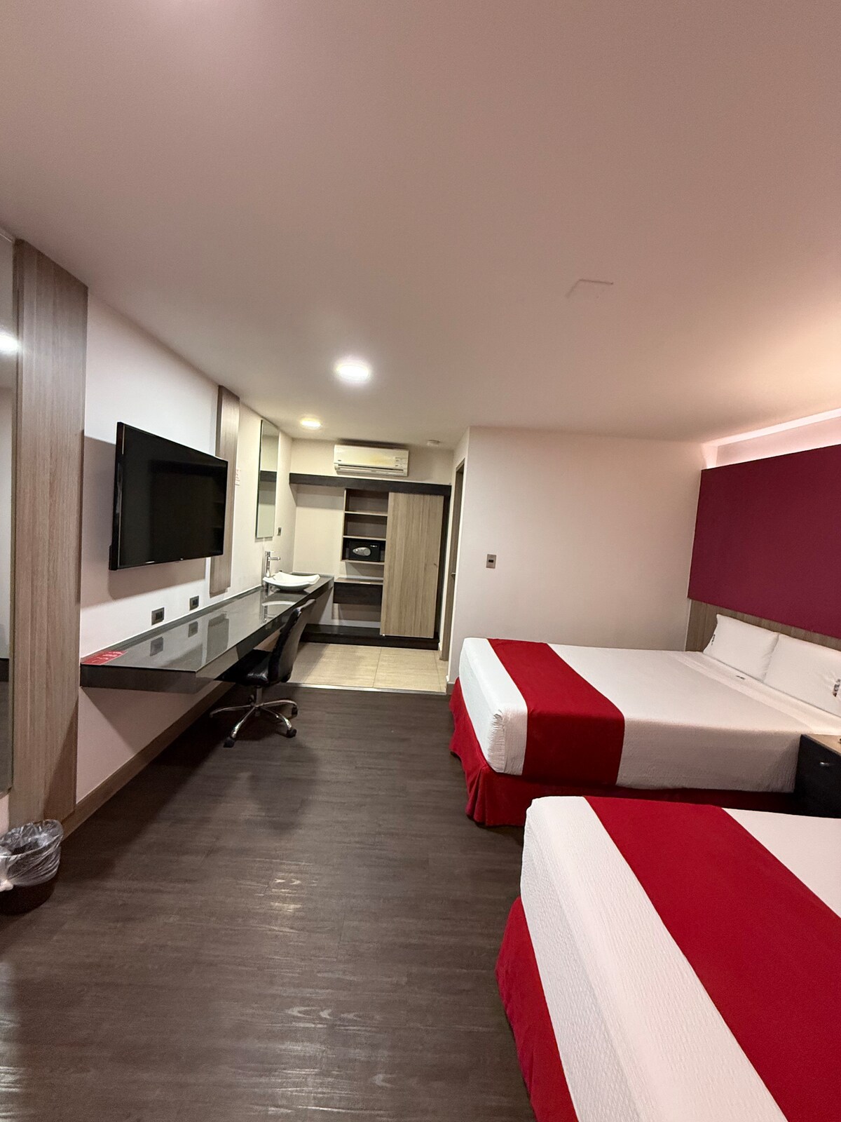 Descripción del Hotel Disfrute de una estancia en un hotel nuevo, elegante y confortable. El hotel cuenta con acceso incluido a alberca, jacuzzi, sauna y gimnasio, permitiéndole relajarse y mantenerse activo durante su estancia sin costo adicional. Ya sea por negocios o placer, aquí encontrará el equilibrio perfecto entre comodidad, elegancia y bienestar.