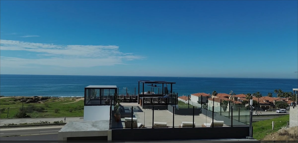 Luxury residence with 7 bedrooms, each with a private bathroom, ideal for those seeking comfort and privacy. Most bedrooms offer ocean views, with exclusive access to a full four-level home. Includes high-speed internet, unlimited hot water, and private parking for up to 6 vehicles. Located 10 minutes by car from downtown Rosarito and Papas & Beer, 30 minutes south of Ensenada, and just 5 minutes by car from the beach.