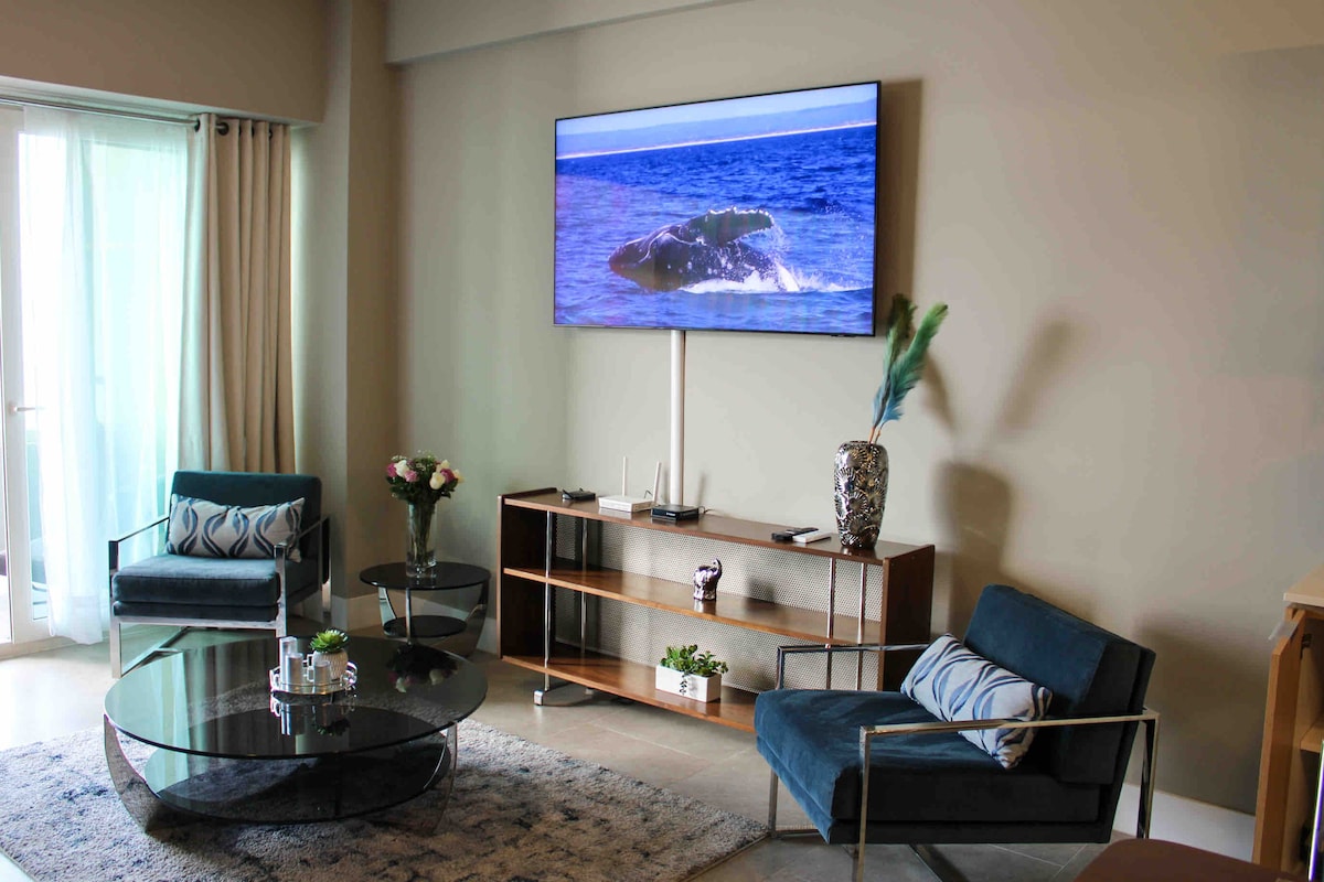 Luxurious Condominium with exclusive areas facing the sea, 3 heated pools, jacuzzi, gym, dining table. 1 master bedroom, Queen bed, closet, exclusive bathroom with balcony, AC 1 Room with Full Bed with closet, AC. 2 bathrooms Fully equipped kitchen. Living room with TV, Couch, Dinning Table Balcony with Sea View Washing/Dry Machines 2 Parkings Spots Wifi Seventh Floor