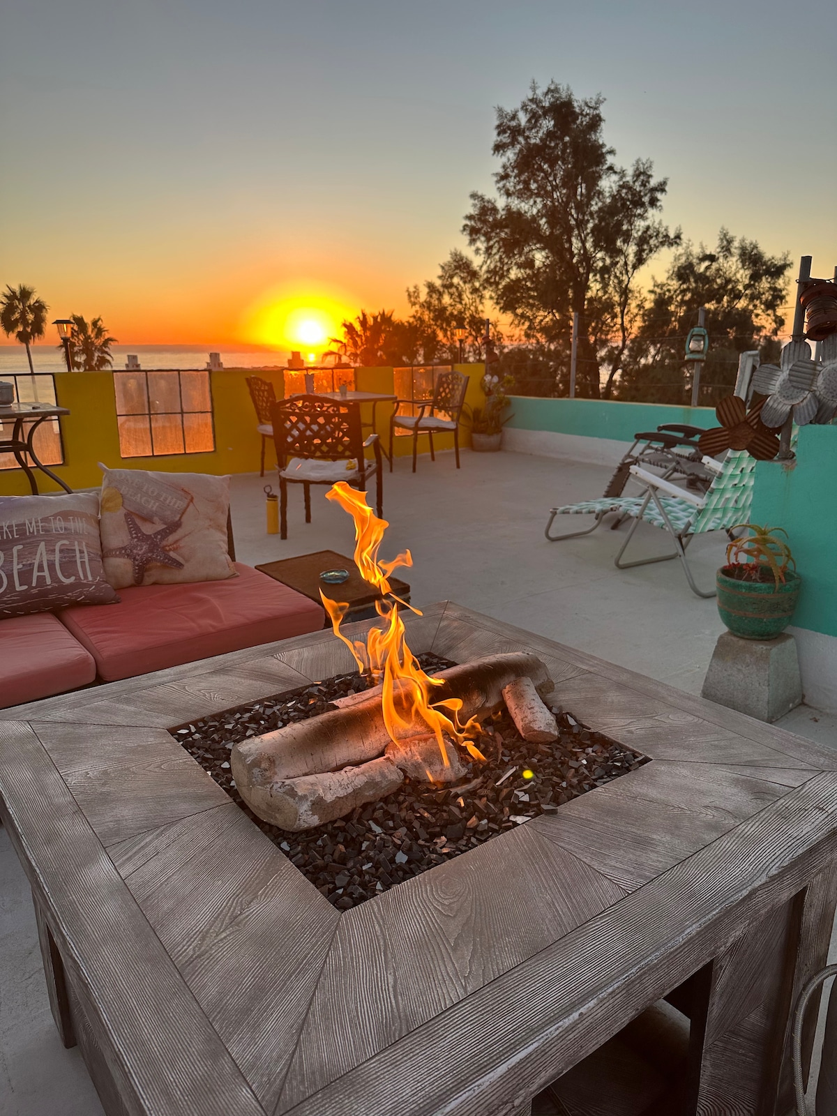 This one-of-a-kind casita has been fully remodeled in fine European Spanish charm darning a chic spacious kitchen, 3-piece bathroom, romantically draped canopy bed dressed in luxurious linens, a wood burning fireplace, quaint garden patio w/fountain & bistro table, a private roof top palapa w/ full pano ocean view & custom queen size bed swing and barstools w/dining perch, etc... all within a short distance of steps that lead down to our private beach for miles of walking when the tide is low!