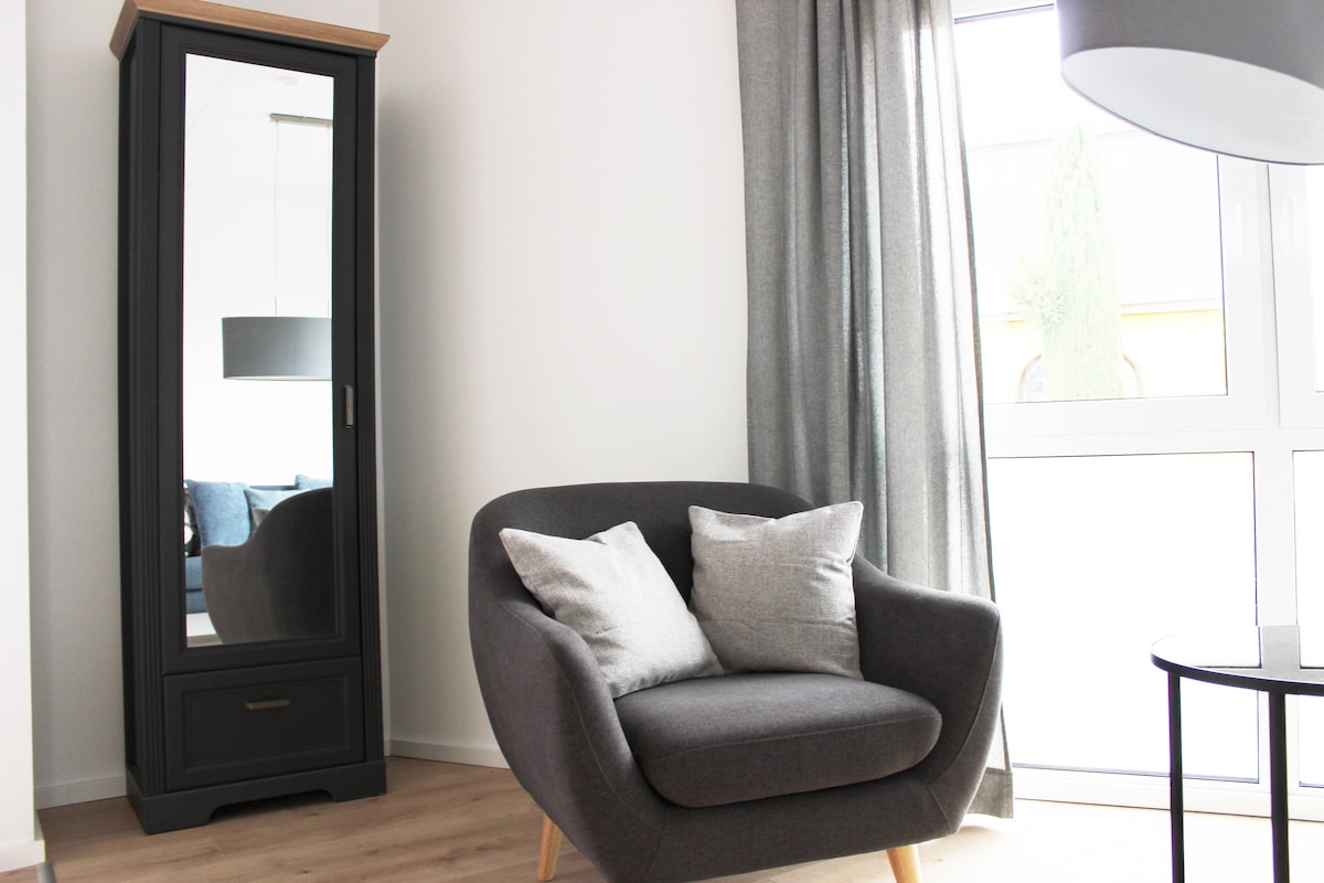 THE FLAG Oskar M. is located directly between River Main and ECB, in Frankfurt's east. Our 68 generous, high-quality serviced apartments offer pure feel-good atmosphere with a size between 40 sqm to 55 sqm. Each studio apartment has a fully equipped kitchen, optically separated living and sleeping areas, topped off with an air condition and a logia. Our modern apartments are perfect for individual and business traveler who want to enjoy the comfort and privacy as in their own four walls.
