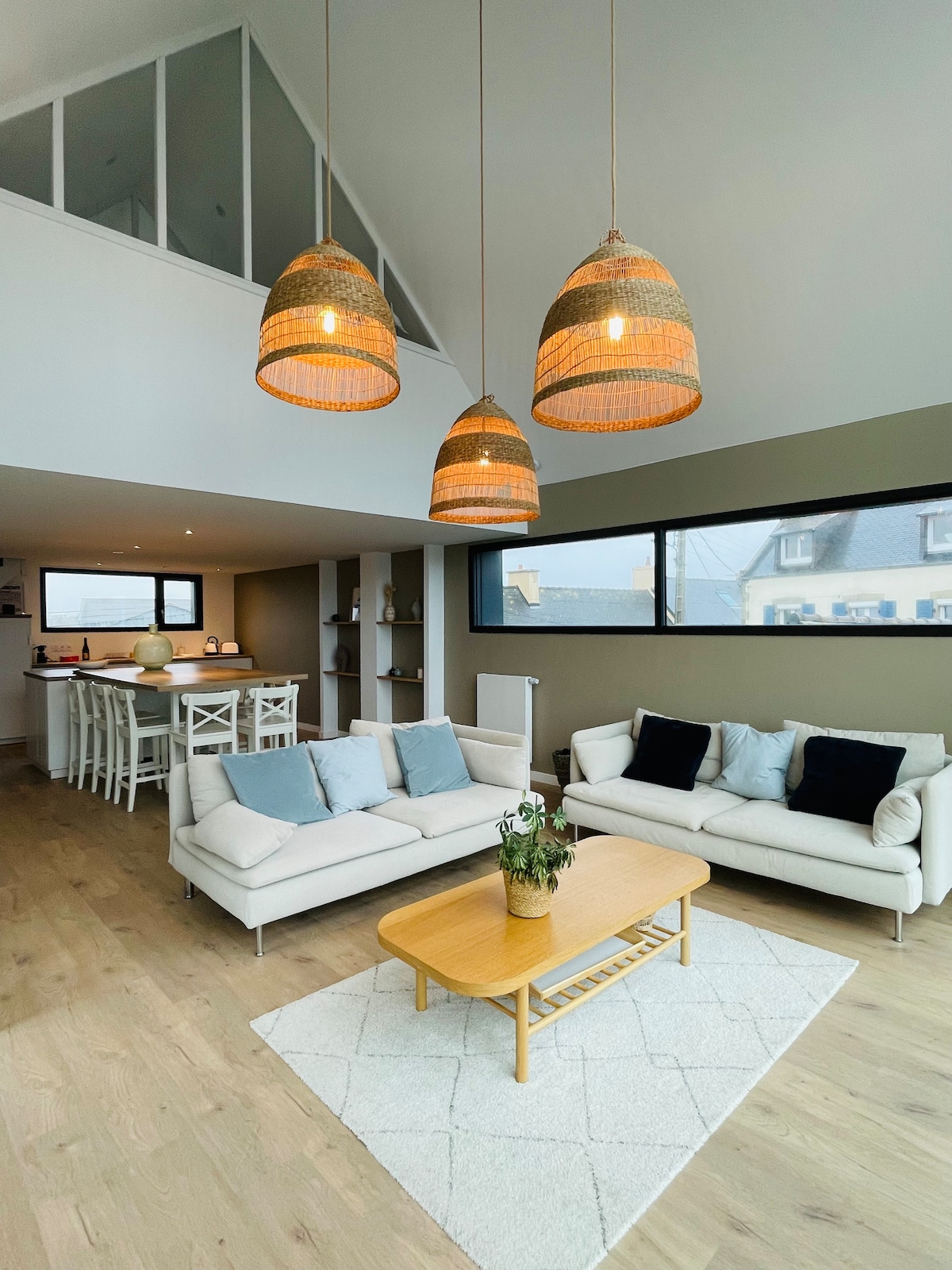 Surplombant la mer avec une vue exceptionnelle sur l'île de Batz et la pointe de Perharidy, découvrez ce bel appartement, chic et élégant, de 160 m² pouvant accueillir jusqu'à 4 personnes. Son intérieur très contemporain et moderne, offre de beaux espaces, avec 2 chambres, une terrasse de 130m2 avec son spa privatif à l'abri des regards, chauffé toute l'année.