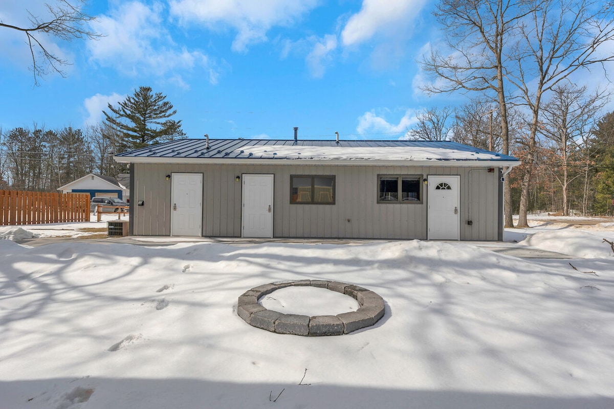 Kick back and relax in this tranquil, stylish space. Indoor fireplace, outdoor fire pit (with plenty of wood) and outdoor dining space. Kitchen is equipped with everything you need (small appliances, pots & pans, utensils, etc). Dining table with family games. Right across the street from the lake on the south shore. Located within walking distance to restaurants, stores, ice cream shop, etc. Half a block lake access for ice fishing and snowmobiling. No pets please.