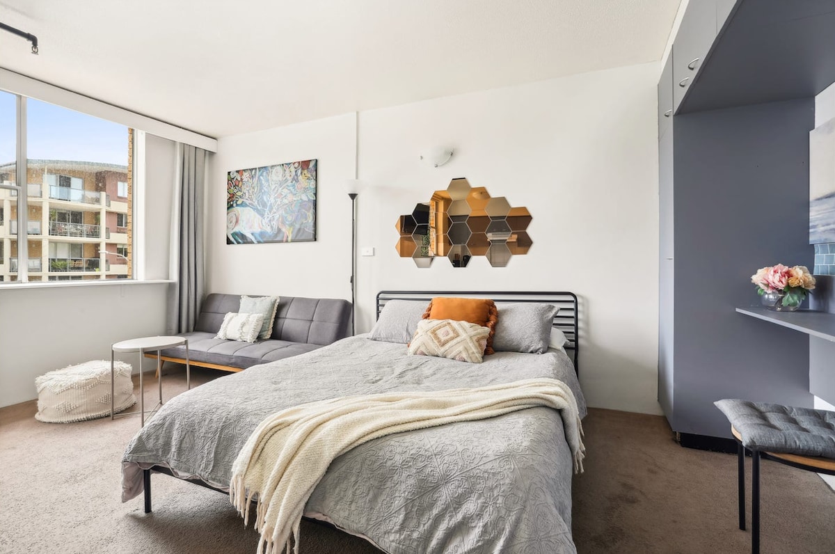 ✪ North Bondi Studio Haven ✪ ❅ Private, large studio – Perfect for up to 2 guests ❅ Luxe queen bed & large en-suite ❅ Fully equipped kitchenette: fridge, microwave, hot-plate, sandwich-maker, toaster, pots & pans ❅ HDTV, super-fast Wi-Fi (300 Mbps), air-conditioning ❅ Shared sunny patio with outdoor seating ❅ You'll love the 270-degree views from the common space, walking paths, and privacy. If you have any questions, feel free to reach out.