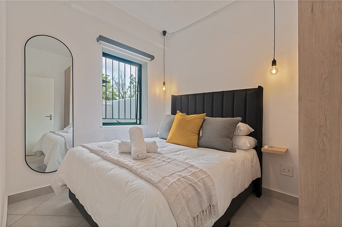 Make yourself at home in this calm, stylish Rosebank loft with high ceilings, abundant natural light, and open-plan living. Ideal for leisure or work— office spaces, and a backup generator ensures no loadshedding. Enjoy Free Fibre Wi-Fi, 24/7 security, and secure parking. Centrally located – it’s your perfect home base to immerse in Rosebank’s vibrance. Just a 3-minute walk to Gautrain Station or Rosebank Mall, and 10 mins drive to Sandton. We usually reply to messages in an hour (office hrs)
