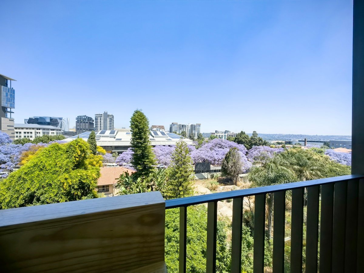 Modern, sunlit apartment in the heart of Rosebank 5 mins to Rosebank Mall & Gautrain, 1 min to Pink Mama’s Located in the brand-new One Rosebank development 1 Queen bed Stay connected with high-speed WiFi Fully equipped kitchen with Smeg appliances & Le Creuset cookware Carrol Boyes glassware for a touch of luxury Adjustable TV bracket for comfort viewing Serene garden view with beautiful purple jacarandas Ideal for business or leisure stays at CozyCorner
