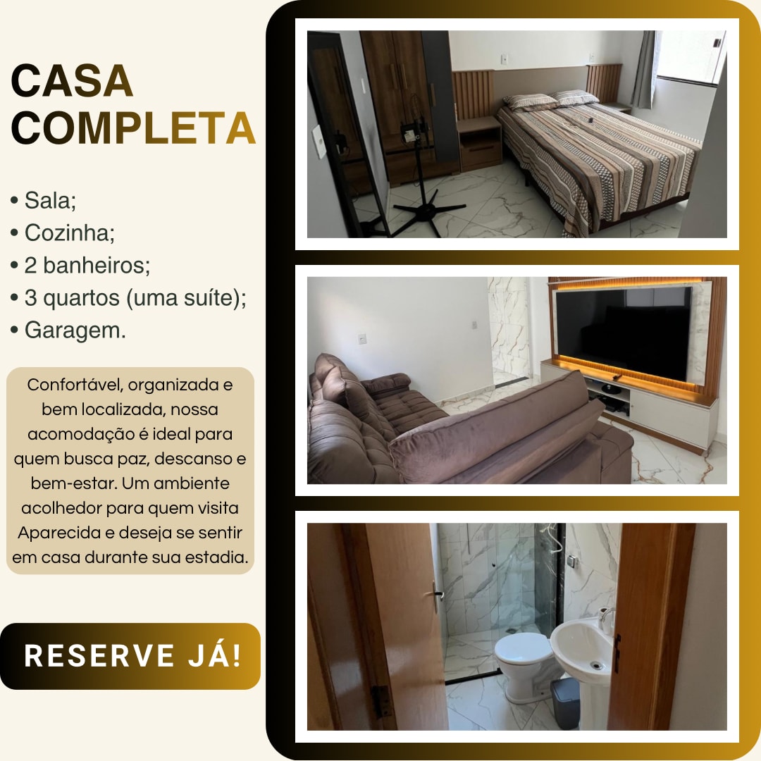 Seja bem-vindo ao nosso espaço! Aqui você encontra conforto e praticidade para sua estadia, seja para descanso ou turismo. Nossa casa acomoda até 6 pessoas com 2 beliches e 1 cama de casal, com 1 quarto tendo ar condicionado, sendo ideal para famílias e pequenos grupos que desejam uma hospedagem tranquila e bem localizada. E o grande diferencial: uma vista encantadora para a imagem de Nossa Senhora de Aparecida! Estando apenas a 5 minutos de distância dela e a 10 minutos da Basílica 🚗