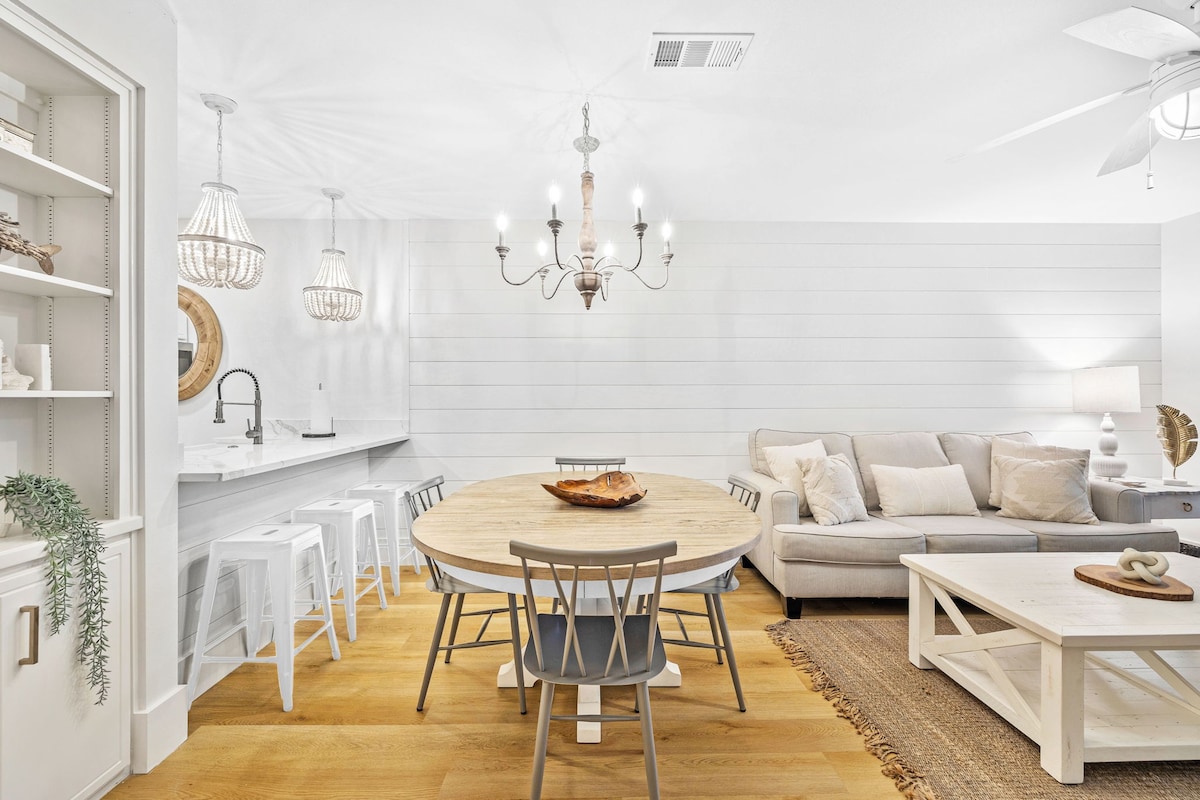 Escape to the charming beach town of Inlet Beach for a family friendly getaway. Enjoy proximity to one of the most beautiful white sand beaches with clear emerald waters, located in a serene residential neighborhood close to Rosemary Beach. Indulge in relaxation or explore new activities. Shopping, dining, and entertainment within walking distance. Our beach access includes restrooms, an artificial reef for snorkeling, free parking, chair and umbrella rentals, and a lifeguard during peak season.