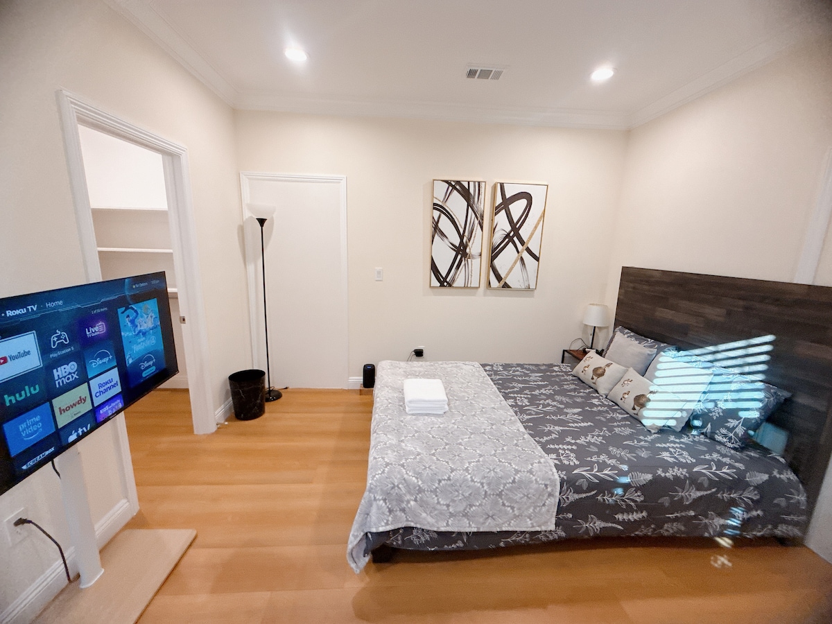 Peaceful & stylish retreat in a central location with FREE PARKING and easy access to DTLA Hollywood and Disneyland. Unwind in a calm well-designed space featuring a queen bed, a cozy living area and ULTRA FAST 1 GIG internet. Just minutes to I-10 freeway & surrounded by great restaurants ideal for couples/business travelers or a relaxing stay. Distance - SoFi Stadium / World Cup -30miles DTLA/Crypto -10miles Disneyland -30miles Hollywood /Universals -20miles Los Angeles Airport (LAX) -30miles