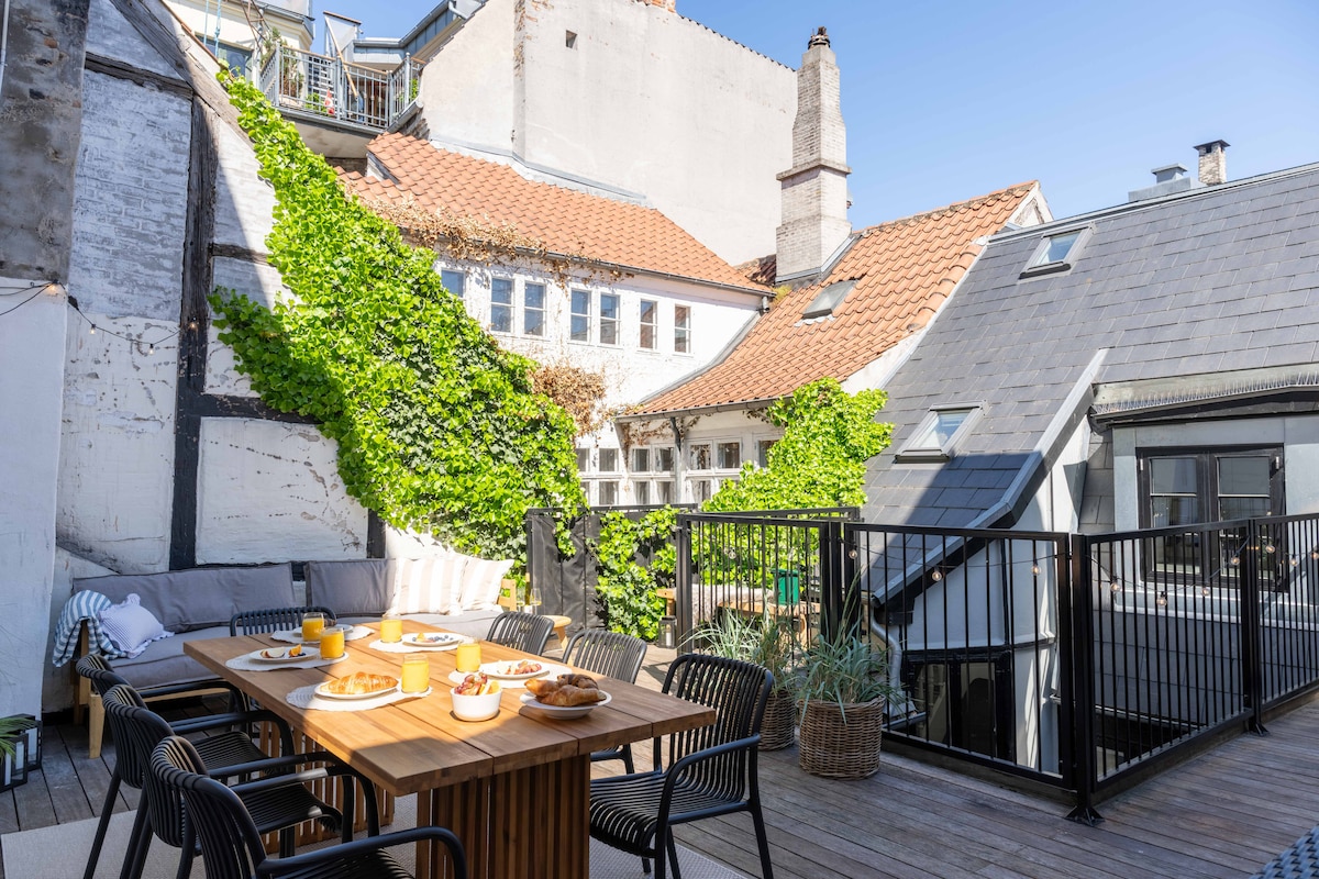 The epitome of HYGGE! Luxurious laid back scandi vibes in the heart of the city. A stones throw from Tivoli & City Hall. This listed & stylishly restored flat has a comfy kingsize bed, bathroom w rain shower/modern kitchen/cozy living room & walk-in closet. Our guests tell us they love this rare garden apartment but the quiet all private yard is what makes it so unique. We live upstairs in our hidden gem from 1730 situated by Strøget in the Marais of CPH:"Pisserenden" IG:@historichouseandgarden