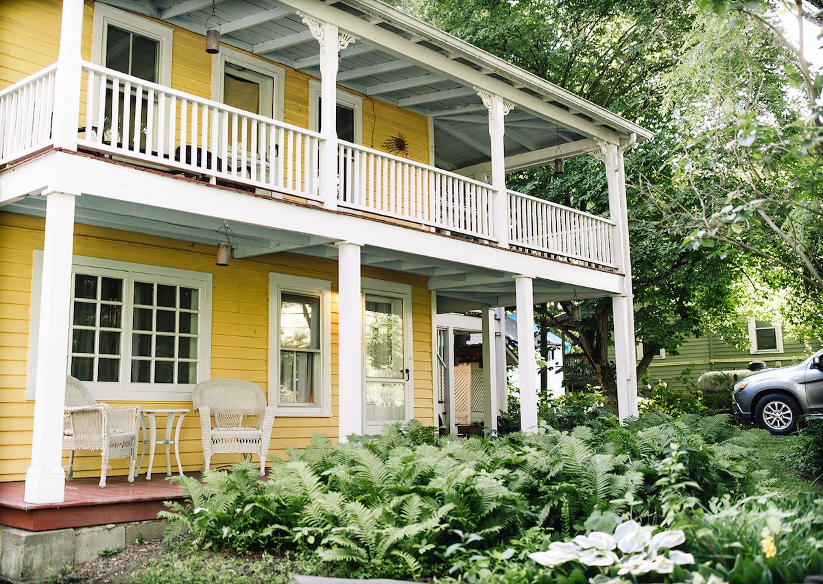 Lovingly restored garden level apt in 1870's Victorian. Sweeping Hudson River views (with private patio) and just steps away from the entrance for the Kingston Point Rail Trail. Quick 1/2 mile walk to restaurants, shops and boats in Kingston's downtown historic West Strand. One mile walk to events at Hutton Brickyards. California king bed, Central A/C, washer-dryer. and full kitchen in unit! Designed by dog lovers (dogs 45 lbs and under are typically most comfortable due to size of space).