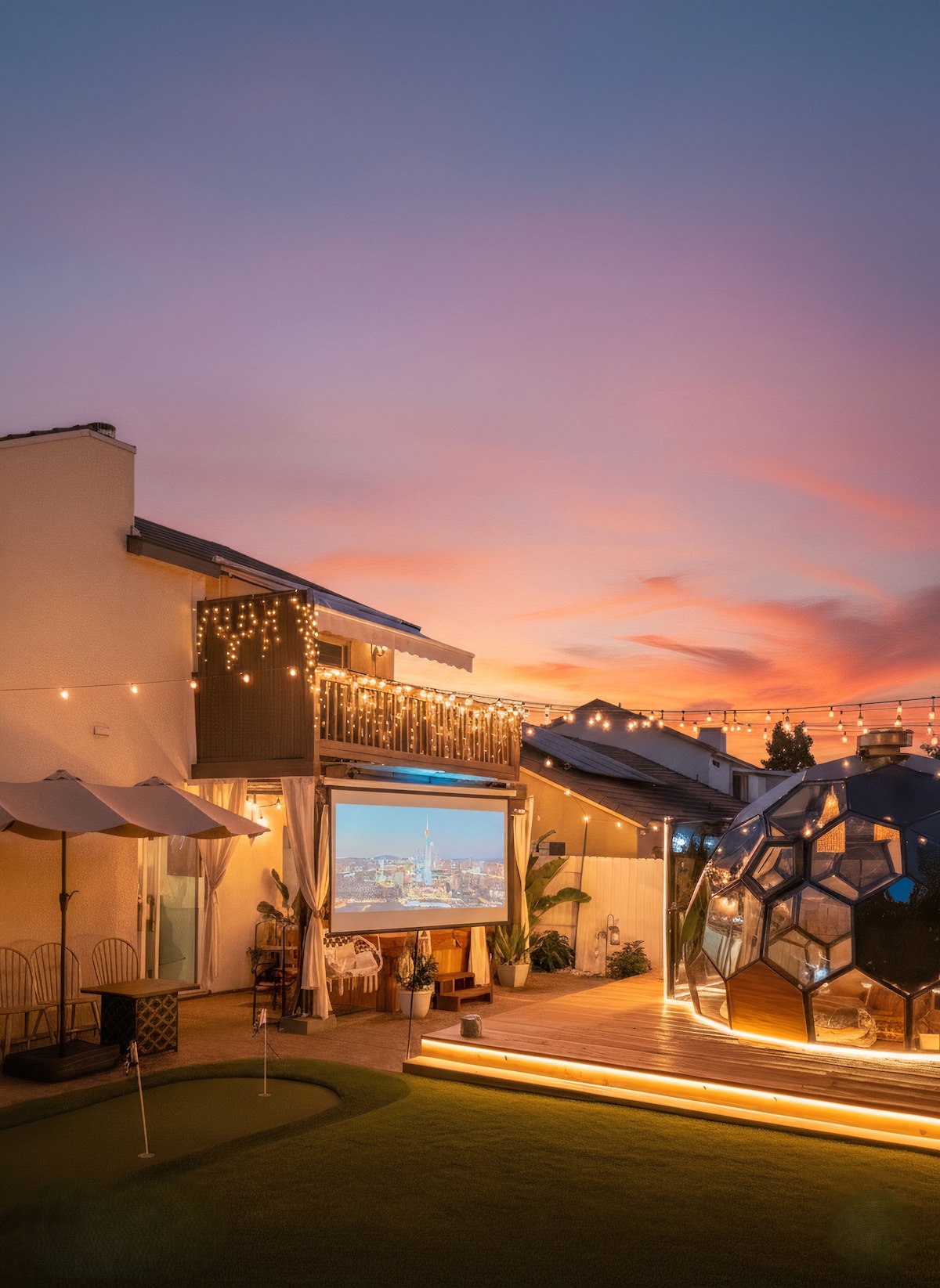 可供10人入住•波西米亚风格圆顶•热水浴缸、游戏和高尔夫球场
