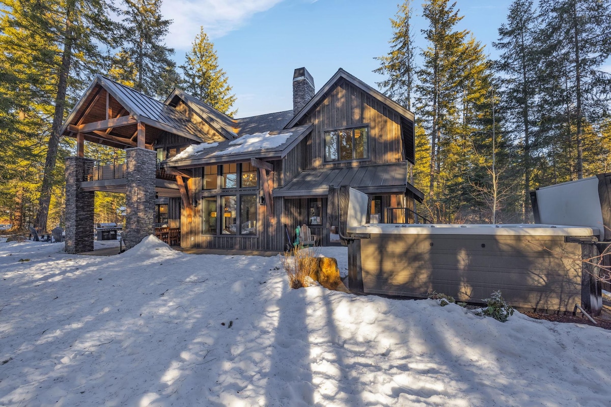 Lake & Mountain View cabin on quiet road. Fast WIFI! 4 live-stream flatscreens, including all bedrooms! Free NETFLIX A contemporary upscale design with rustic animal themes. 2 levels, windows facing the lake and mountains, pellet stove, central air. Master bed overlooking lake, with adjacent bathroom. 5 beds. Deck w/ 40 jet Clearwater spa, firepit & seating area. Hike or cross c.-ski right out the door. Snowmobile up Roslyn ridge! Note: Thanksgiving: 4 days required. 3 day weekends=3 nites.